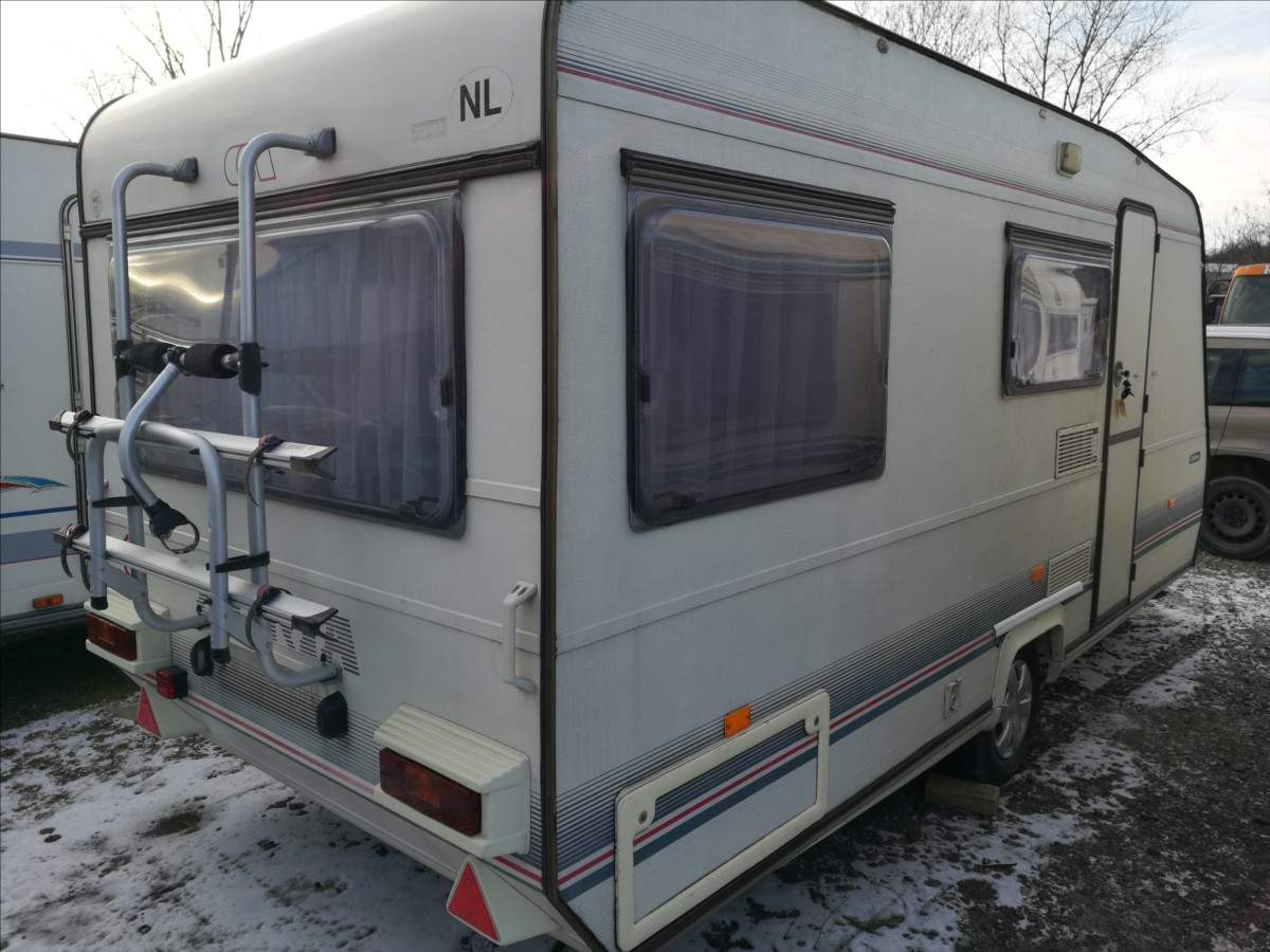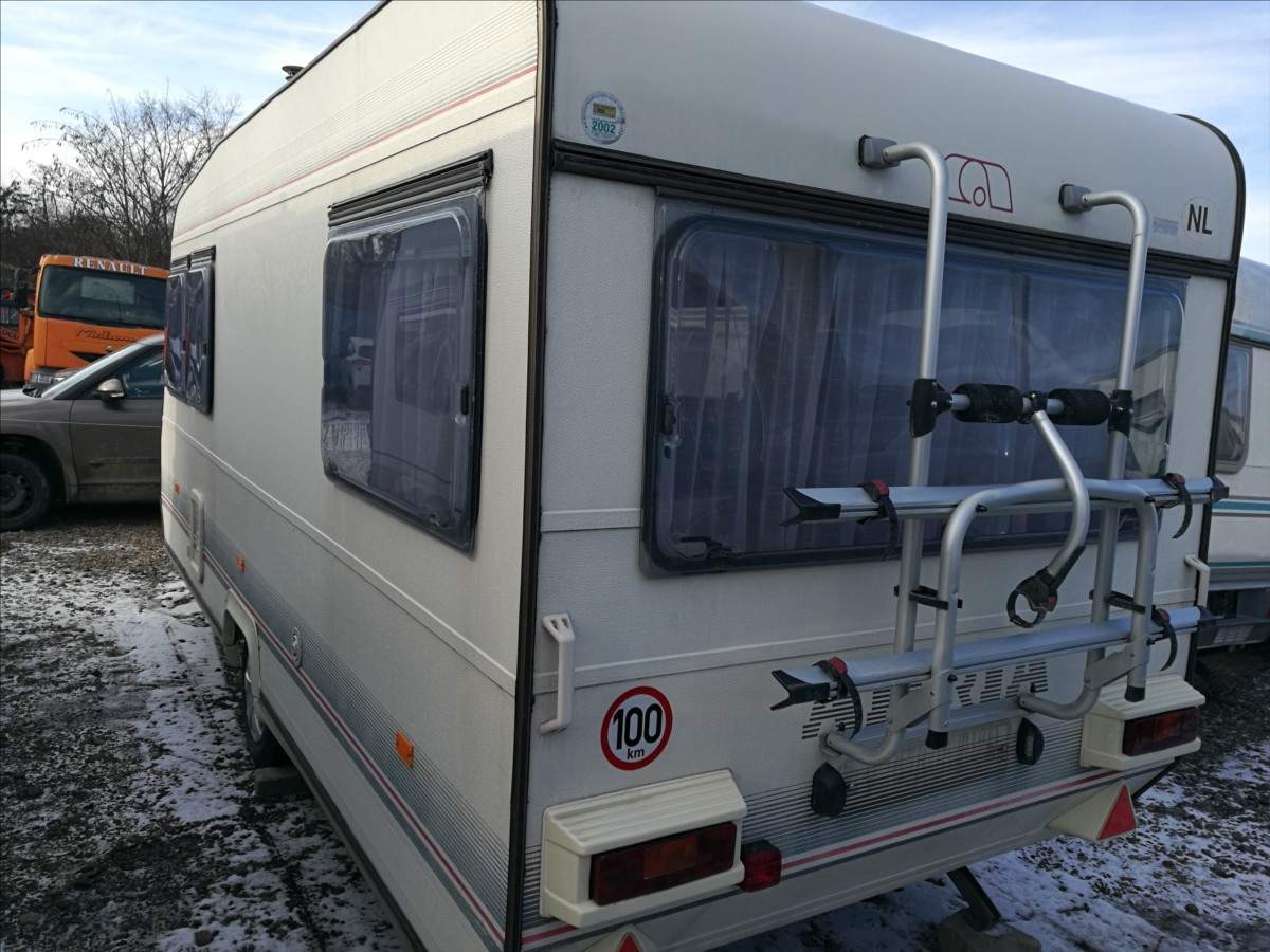 4-5x spaní; 2x sezení; topení; lednice; vařič; dřez; pevné WC a sprch.vanička s umývadlem v kabince; předstan s kuchyňkou vč.konstrukce; LCD TV + DO; zadní nosič na 2-3 kola; dovozová dokumentace NL; možnost přihlášení na české SPZ; max.rychlost 100 km/ hod.; pohotovostní/ celková hmotnost 812/ 1100 kg;