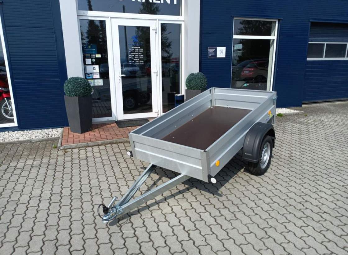 Nejlevnější typ pro Hobby použití. Nebrzděný přívěsy s celkovou hmotností 750 kg. Ložná plocha 2050x1090x300 mm. Provedení s V ojí; plechové bočnice s Al-Zn úpravou; 13 kola; 7pólová elektroinstalace; podlaha je vyrobená z voděodolné protiskluzové překližky o síle 9 mm; 4 ks kotvících ok v podlaze přívěsu.;