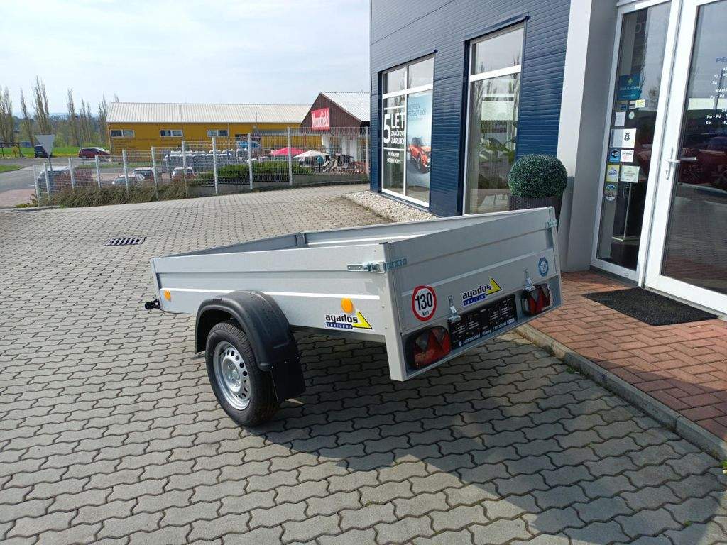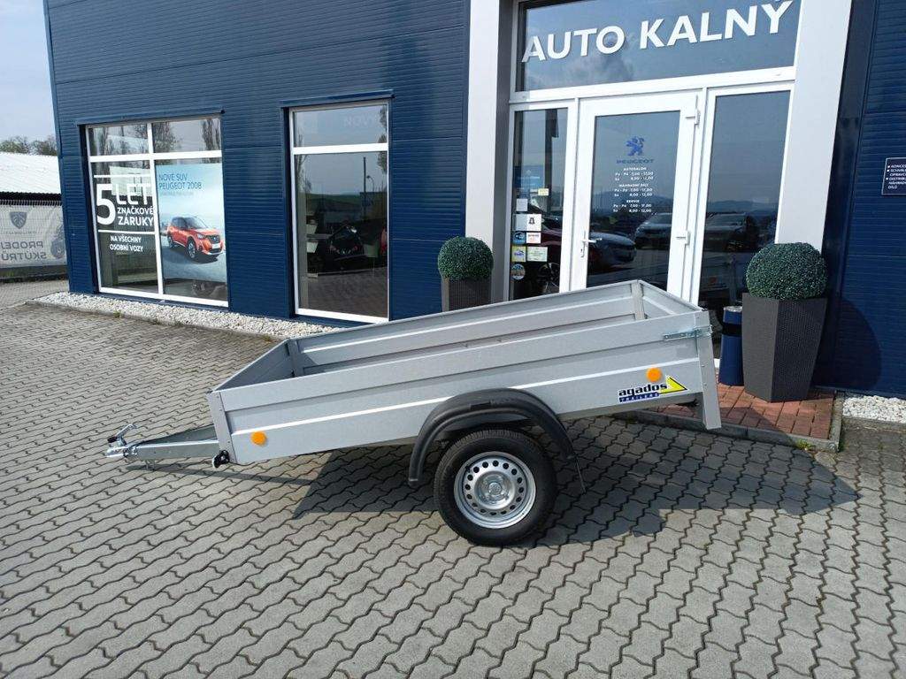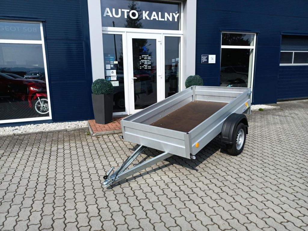 Nebrzděný přívěs s celkovou hmotností 750 kg. Ložná plocha 2270x1250x350 mm. Provedení s V ojí; plechové bočnice s Al-Zn úpravou; 13 kola; 7pólová elektroinstalace; podlaha je vyrobená z voděodolné protiskluzové překližky o síle 9 mm; 4 ks kotvících ok v podlaze.;
