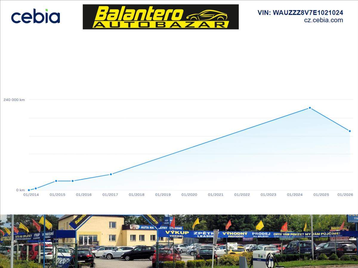 Spotřebitelský úvěr možný, NÍZKÉ SPLÁTKY, akontace od 0%, informujte se - 601 002 157. Prověřeno CEBIA. záruka PŮVODU a KILOMETRŮ.; Spotřebitelský úvěr možný; Velmi dobrý technický stav; dovoz Německo; 2x klíč; volba jízdních režimů; nemá vypínání válců; barevný maxidot; CZ mapy; rozvody při 153tkm VIN: WAUZZZ8V7E1021024. Podezření na manilupaci s tachometrem v roce 2024; prověřeno CEBIA. Kontakt: 601 002 157; rádi Vám poradíme. Nejedná se o návrh na uzavření smlouvy (nabídku) ve smyslu § 1731 a §1732 zákona č. 89/2012 Sb.; Občanského zákoníku. Společnost Balantero s.r.o. si vyhrazuje právo uzavření všech smluvních vztahů písemně.;