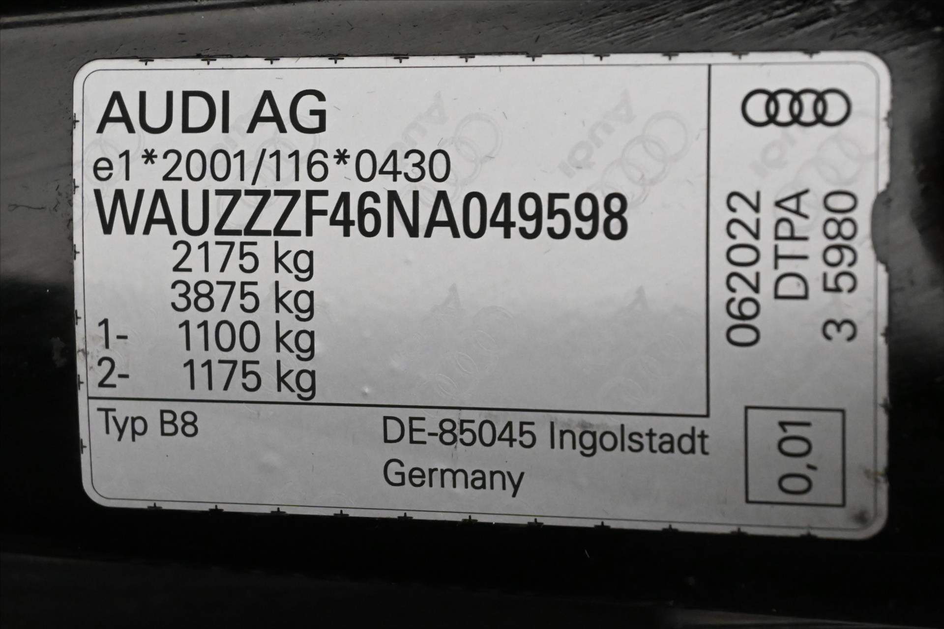 WAUZZZF46NA049598 prověřit vozidlo online