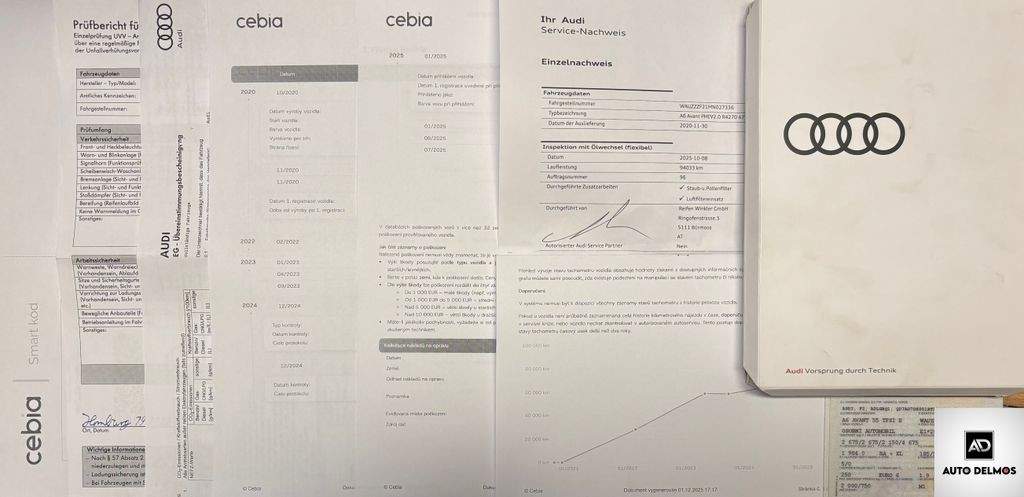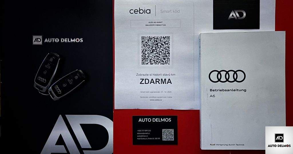 VIN: WAUZZZF21MN027336-Audi A6 55TFSIe/2021/4X4; S-LINE-ZÁRUKA--Vůz po 1. majiteli; původ D; servisní kniha. Pravidelný servis v síti autorizovaných servisů AUDI; poslední servis 10/2025- 94.000 km; možnost výhodného financování vozu a prodloužené záruky. Certifikát najetých kilo; roku výroby a původu vozu od nezávislé společnosti CEBIA; DEKRA; AUDI. Udržovaný a zachovalý stav. PO KOMPLETNÍM SERVISU A PRODLOUŽENÉ ZÁRUKY; Další informace naleznete na www.DELMOS.cz. nabídka není nabídkou ve smyslu §1731 nebo §1732 občanského zákoníku; PROVOZ A MODEL 2021; -ZÁRUKA V CENĚ DO 2027; S-LINE PERFEKTNÍ STAV;
