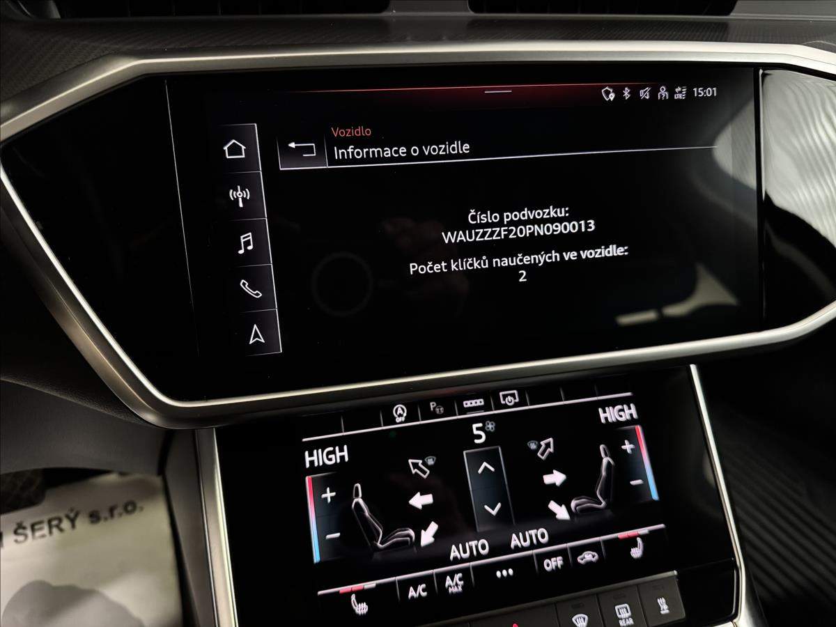 Záruka 1rok/20.000km v ceně vozu. Možný odpočet DPH; servisováno v Audi; poslední servis 10/25 při 54.497 km včetně oleje v automatu; 2x alu sada; s vozidlem je možno ihned odjet; nehavarováno; nelakováno. Údaje obsažené v této kartě vozu mají informativní charakter a nemohou zachytit veškeré detaily stavu a výbavy vozidla. Podrobný popis stavu a výbavy bude ověřen až v okamžiku poptávky koupě. Z této indikativní nabídky nevzniká nárok na uzavření smlouvy.;