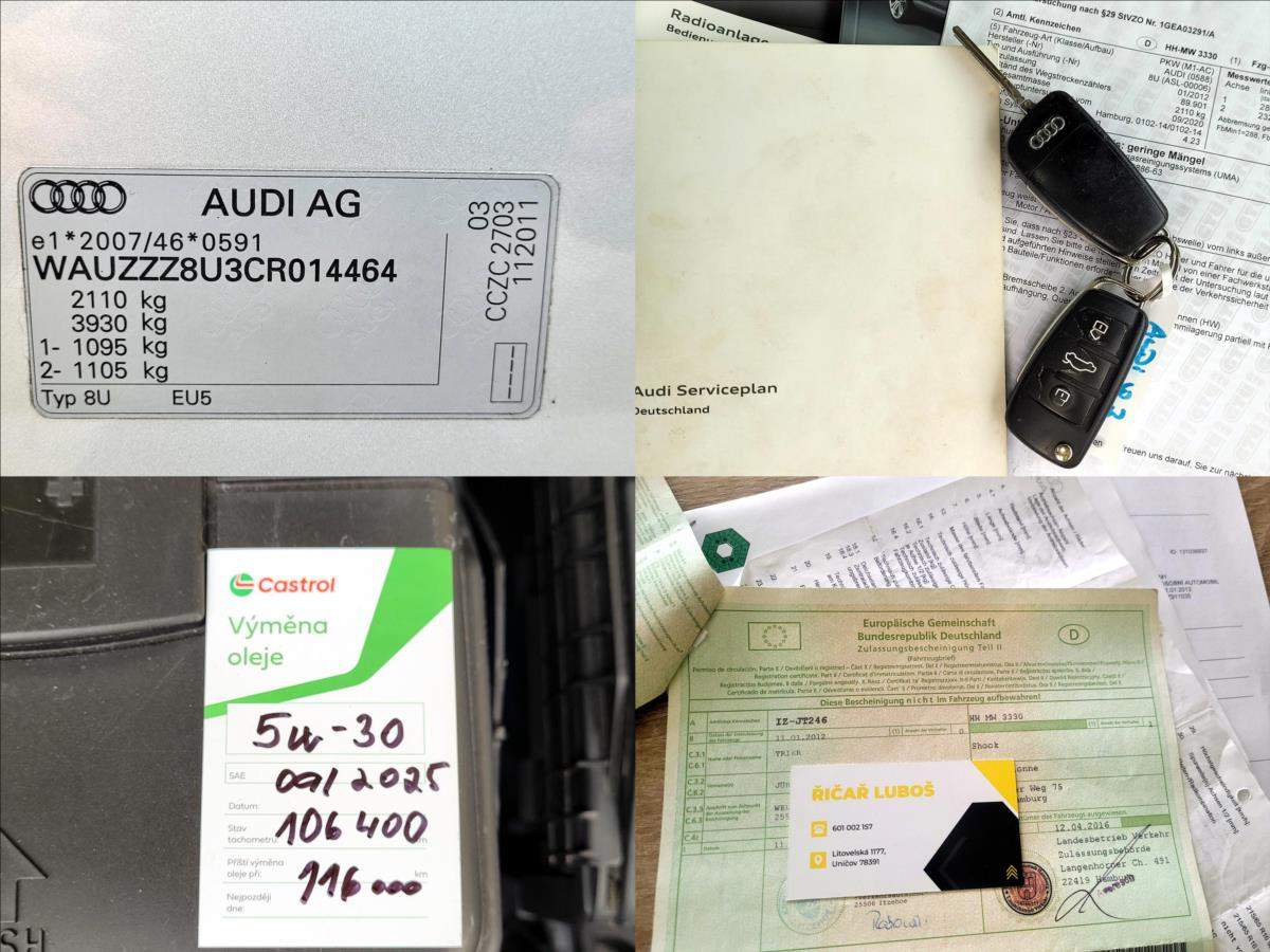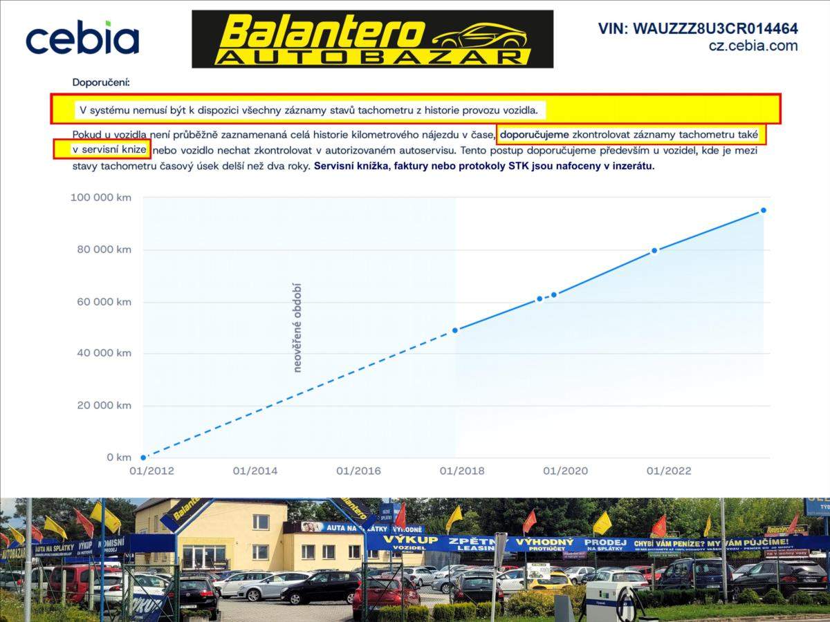 Spotřebitelský úvěr možný, NÍZKÉ SPLÁTKY, akontace od 0%, informujte se - 601 002 157. Prověřeno CEBIA. záruka PŮVODU a KILOMETRŮ.; Druhý majitel; Spotřebitelský úvěr možný; Perfektní technický stav; SERVISNÍ KNÍŽKA; teď nové rozvody; olej; filtry; svíčky; MÁLO NAJETO - doloženo CEBIA - prověření k dispozici; 2x klíč DO; výklopné tažné zařízení; malý kožený paket; dovoz D; pouze 2x majitel; VIN: WAUZZZ8U3CR014464. Záruka PŮVODU a KILOMETRŮ. Kontakt: 601 002 157; rádi Vám poradíme. Nejedná se o návrh na uzavření smlouvy (nabídku) ve smyslu § 1731 a §1732 zákona č. 89/2012 Sb.; Občanského zákoníku. Společnost Balantero s.r.o. si vyhrazuje právo uzavření všech smluvních vztahů písemně.;
