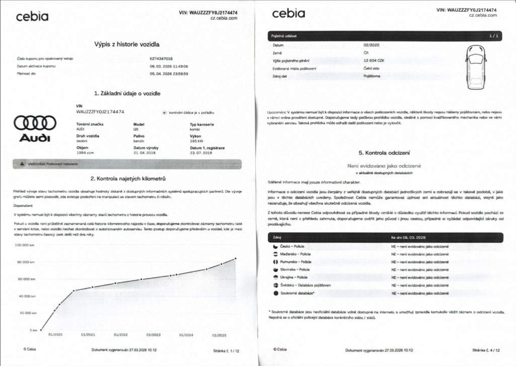 WAUZZZFY0J2174474 prověřit vozidlo online