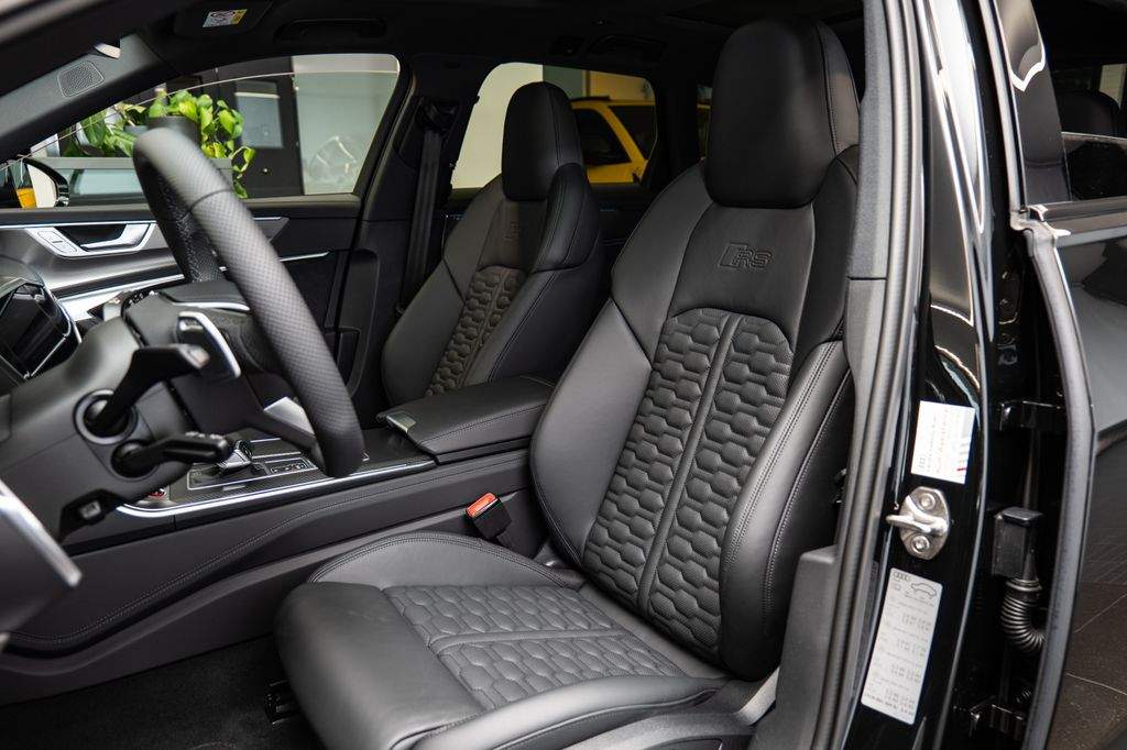 Číslo inzerce CE.xxx.6137; Kožený kryt airbagu Audi exclusive v barvě interiéru; Asistenční paket Parkování s dálkovým parkovacím asistentem; Asistenční paket Město; Asistenční paket Tour; Digitální klíč Audi connect; Černě lesklé Audi kruhy a nápisy; Vnější zpětná zrcátka elektricky nastavitelná; vyhřívaná; sklopná; s automatickým stmíváním a pamětí; Bluetooth handsfree se systémem rozpoznávání hlasu (Audi Phone Box); Dynamický paket plus; Head-up displej; Interiér: kožené prvky v horní a dolní části interiéru; Keramická brzdová soustava vpředu i vzadu; Červeně lakované brzdové třmeny; Digitální přístrojový štít (virtual cockpit plus) s RS designem; Komfortní klíč s bezdotykovým odemykáním pátých dveří a alarmem (otevírání i zavírání); Litá kola 10; 5x22' (design 5paprskové V-struktury; černá); Matrix LED světlomety s laserovým světlem; Metalický lak; Panoramatické střešní okno vpředu elektrické; vzadu pevné; Boční airbagy vpředu i vzadu; Ovládání garážových vrat (integrovaný vysílač); Dovírání dveří (servosamy); Čalounění: perforovaná kůže Valcona s prošíváním ve stylu včelí plástve; ventilovaná sedadla; Audio systém Bang & Olufsen; Sportovní výfukový systém; Nezávislé topení; USB-C nabíjecí porty (2x) pro zadní cestující; Zatmavená skla vzadu (Privacy Glass);