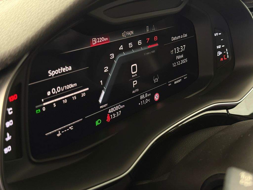 VIN WAUZZZF11PD003992. Vozidlo od autorizovaného dealera Audi; původem z Německa po 1. majiteli. Servis pouze v autorizovaném servisu Audi doložitelný servisní knihou. Garance počtu najetých km a původu v kupní smlouvě. K vozu veškerá palubní dokumentace; servisní kniha; 2x klíč od vozidla. Výbava Competition Plus; Interiér v kůži Valcona; El. nastavitelná přední S-Line sedadla s pamětí a masáží; Nezávislé topení Webasto s DO; Vyhřívaná přední sedadla; Čtyřzónová automatická klimatizace; Vyhřívaný volant; Bang & Olufsen Premium 3D Soundsystem; Panoramatické střešní okno; Soft close - dovírání dveří; LED světlomety; Head-up displej; Audi Drive Select – vzduchový podvozek; ACC - adaptivní tempomat; Easy Open – bezklíčové odemykání/startování; Barevné ambientní osvětlení interiéru; Zadní parkovací kamera; Navigační systém; Android Auto/Apple CarPlay; Originální litá kola R22. MOŽNÝ ODPOČET DPH.;