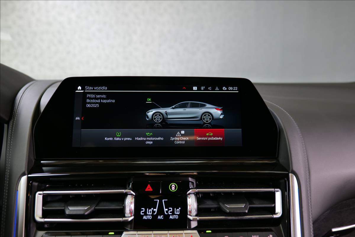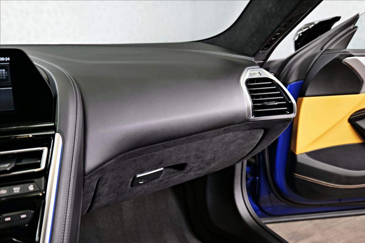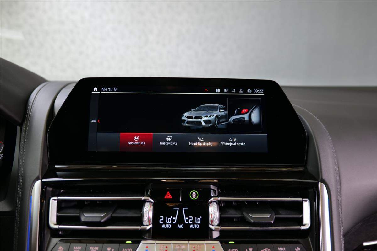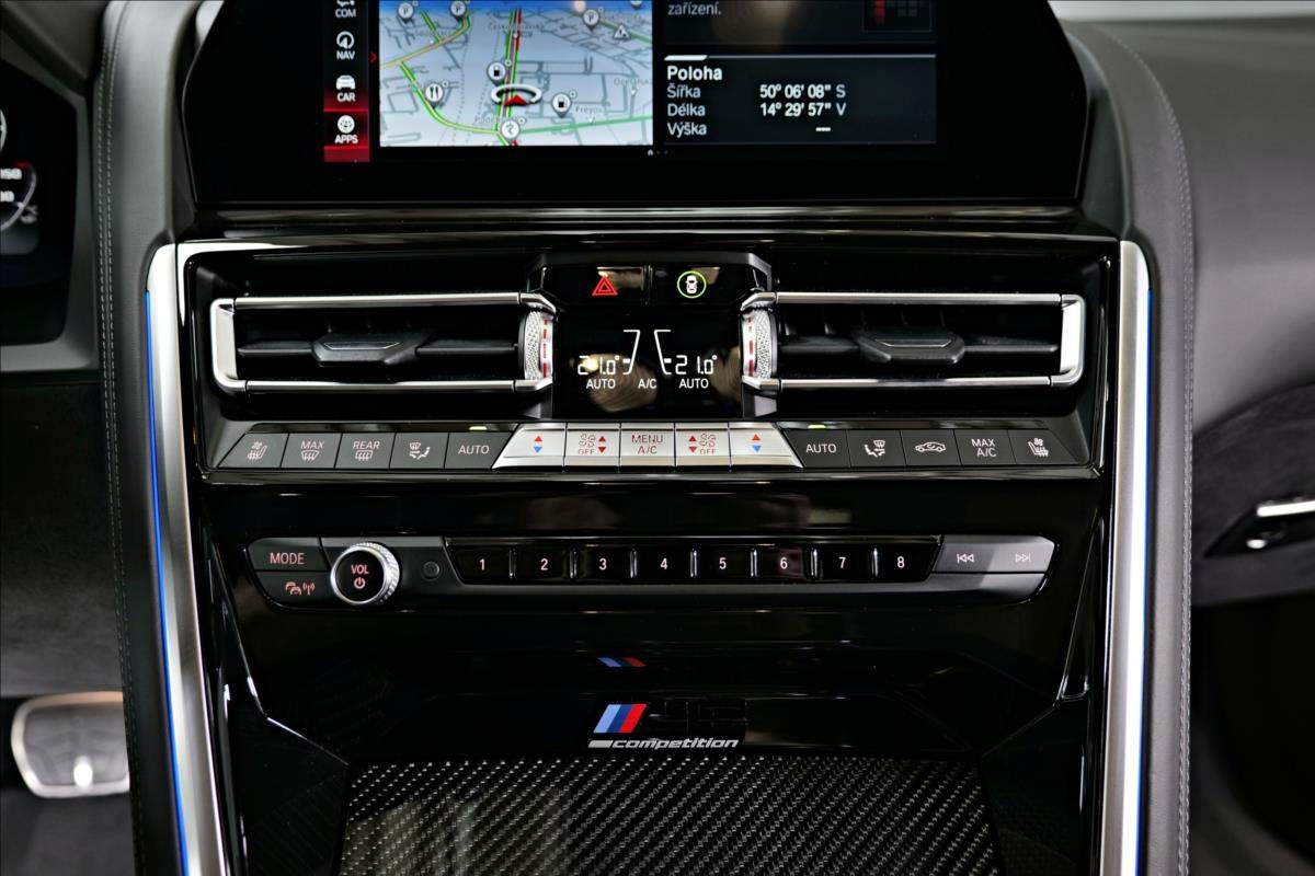 Dobrý den; máme na prodej BMW M8 Competition Gran Coupé. Vozidlo je lakované v modré matné barvě (Frozen Marina Bay Blue) Interiér vozidla je černo hnědé kombinaci (Leder Merino Schwarz / Midrand). Další výbava vozidla:20 Palcové disky Bowers & Wilkins Diamond Surround Sound System BMW klíč s displejem Laserové světlo BMW M keramický brzdový systém M sportovní výfukový systém M sportovní diferenciál Ventilace předních sedadel Paket Heat Comfort vpředu Profesionální řidičský asistent;