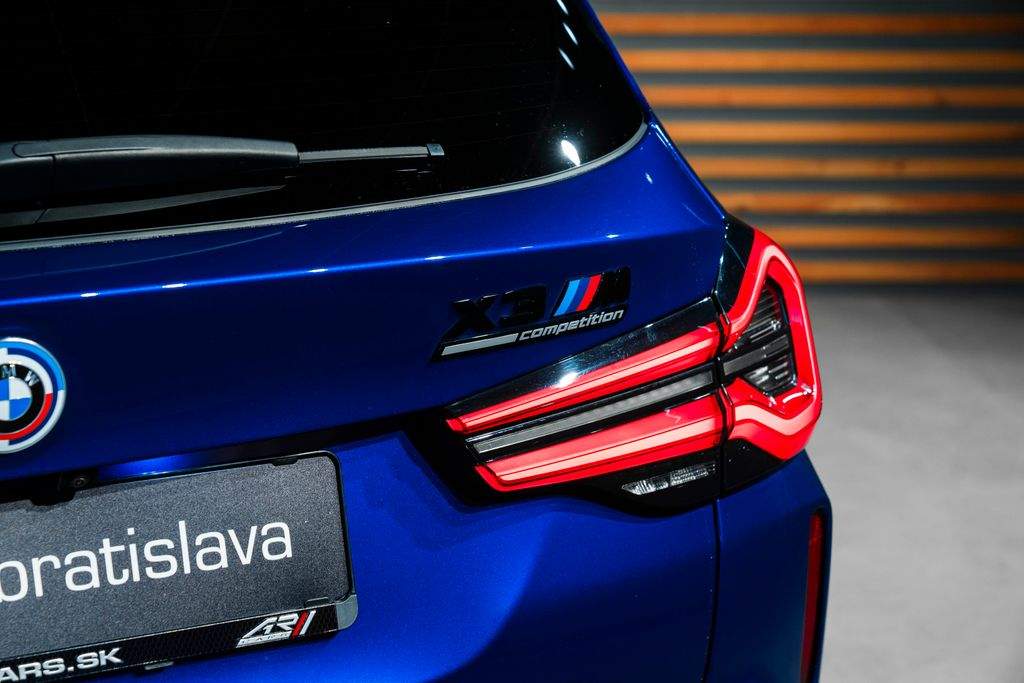 Bratislava; BMW X3 M Competition Exkluzívne BMW X3 M Competition v sebe spája všestrannosť SUV s výkonom pravého M modelu. Pod kapotou pracuje motor s výkonom až 510 koní; ktorý v kombinácii s M xDrive pohonom prináša fascinujúcu dynamiku a presnosť v každej zákrute. Dizajn a exteriér Vozidlo zaujme už na prvý pohľad svojím športovým charakterom. O ten sa stará M športový výfukový systém; 20” disky M Double Spoke 892M; čierne M brzdové strmene a rozšírený M Shadow Line paket s tmavenými detailmi karosérie. Výnimočnosť dopĺňajú M Heritage logá a panoramatická sklenená strecha; ktorá opticky zväčšuje interiér a prepúšťa viac svetla. Interiér a komfort Interiér kombinuje športovosť s luxusom. M športové sedadlá s ventiláciou; vyhrievaním (vpredu aj vzadu) a bedrovou opierkou ponúkajú maximálne pohodlie aj pri dlhších cestách. Vodič má k dispozícii karbónové dekory; M bezpečnostné pásy; vyhrievaný M volant a ambientné osvetlenie. O príjemnú atmosféru sa stará Ambient Air paket s vôňami. Zadní pasažieri ocenia elektrické nastavenie operadiel a tieňované sklá pre väčšie súkromie. Technológie a konektivita Najnovší infotainment systém BMW Live Cockpit Professional ponúka prehľadné rozhranie s dotykovým displejom; ovládanie gestami; Head-Up displej; bezdrôtové nabíjanie telefónu a WLAN hotspot. Prémiový zvukový systém Harman/Kardon zabezpečí dokonalý hudobný zážitok. Samozrejmosťou sú ConnectedDrive služby; teleservis; núdzové volanie a digitálny DAB tuner. Bezpečnosť a asistenčné systémy O vašu bezpečnosť sa stará najvyššia úroveň asistenčných systémov BMW: • Driving Assistant Professional (adaptívny tempomat; udržiavanie v jazdnom pruhu; rozpoznávanie chodcov) • Active Guard a Active Protection • Parkovacia asistencia Plus s 360° kamerami • BMW Laser svetlomety s vysokým dosahom • Deaktivácia airbagu spolujazdca a aktívna ochrana chodcov Ďalšia výbava Automobil je vybavený komfortným prístupom (Comfort Access); alarmom; univerzálnym diaľkovým ovládaním; ťažným zariadením; súpravou na opravu pneumatík; meraním tlaku v pneumatikách; odkladacím paketom a sieťou v batožinovom priestore. M Driver’s a Competition paket Súčasťou výbavy je aj M Driver’s Package; ktorý zvyšuje maximálnu rýchlosť a umožňuje absolvovať profesionálny M tréning. M Competition paket prináša ostrejšie reakcie motora; precíznejšie riadenie a ešte emotívnejší zvukový prejav. ________________________________________ Kľúčové vlastnosti: • 510 koní / M TwinPower Turbo • M xDrive pohon všetkých kolies • M športový výfuk a brzdy • Panoramatická strecha • BMW Laser svetlomety • Ventilované a vyhrievané M sedadlá • Head-Up displej • Harman/Kardon audio • M Driver’s & Competition paket;