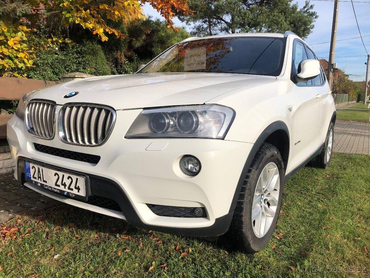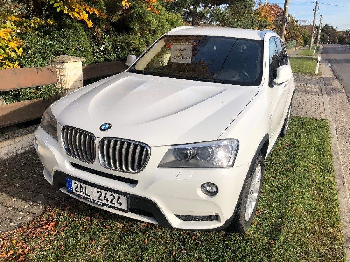 TEL: 731578255 OKR: HRADEC KRÁLOVÉ Prodám BMW X3 30D 190 kw 6V r.2011. Najeto 305 000 km. Servisováno:8.st.automatická převodovka; motor a XDRIVE převodovka(v záruce). Měněny adaptivní pružiny; nové přední brzdy; vystříkány dutiny a podvozek.STK 4.3.2027.Dálnička 4.2026. Třízonová klima; navigace 2024; ABS; ESP; ASR. Jízdní režim normálně a sport. Isofix; tažné Westfália 2t. DVD odblokováno(přehrávač za jízdy). Adaptivní xenonové světlomety.Dešťový senzor; tempomat; parkovací senzory v předu a vzadu. Zadní kamera; dálkové centrální zamykání .2ks klíče; imobilizér. Vnitřní výbava a komfort:bezklíčkové zapalování start-stop(vypínanatelné); el.okna; zrcátka; nastavitelný volant; vyhříváná zrcátka a trysky ostřikovačů. Zadní loketní operka; otáčkomér; Head display; orig.autorádio; CD přehrávač s možností nahrávání; palubní počítač. El.plně nastavitelná přední sedadla. I vyhřívaná. Paměť. Mlhovka; Runflat orig.BMW zimní kola Good year.Tónovaná skla. NEHAVAROVANÉ!;
