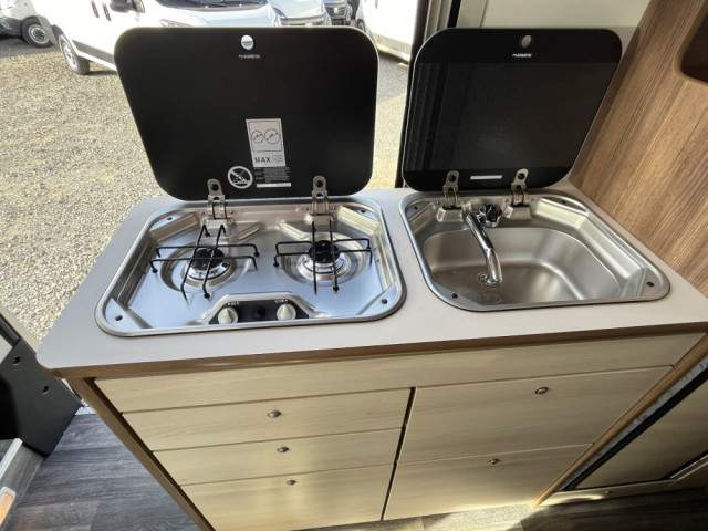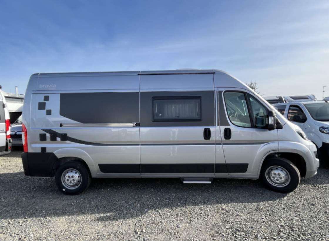 bílá barva karoserie bez lakovaného předního nárazníku; dvouhořákový vařič s nerezovým dřezem a skleněným krytem; kazetové WC Thetford s elektrickým splachováním; koupelna se sprchou; kuchyňka; lednice; skříňky a úložné prostory s odvětráním; topení Truma Combi 4 s integrovaným 10 l bojlerem (podle modelu);