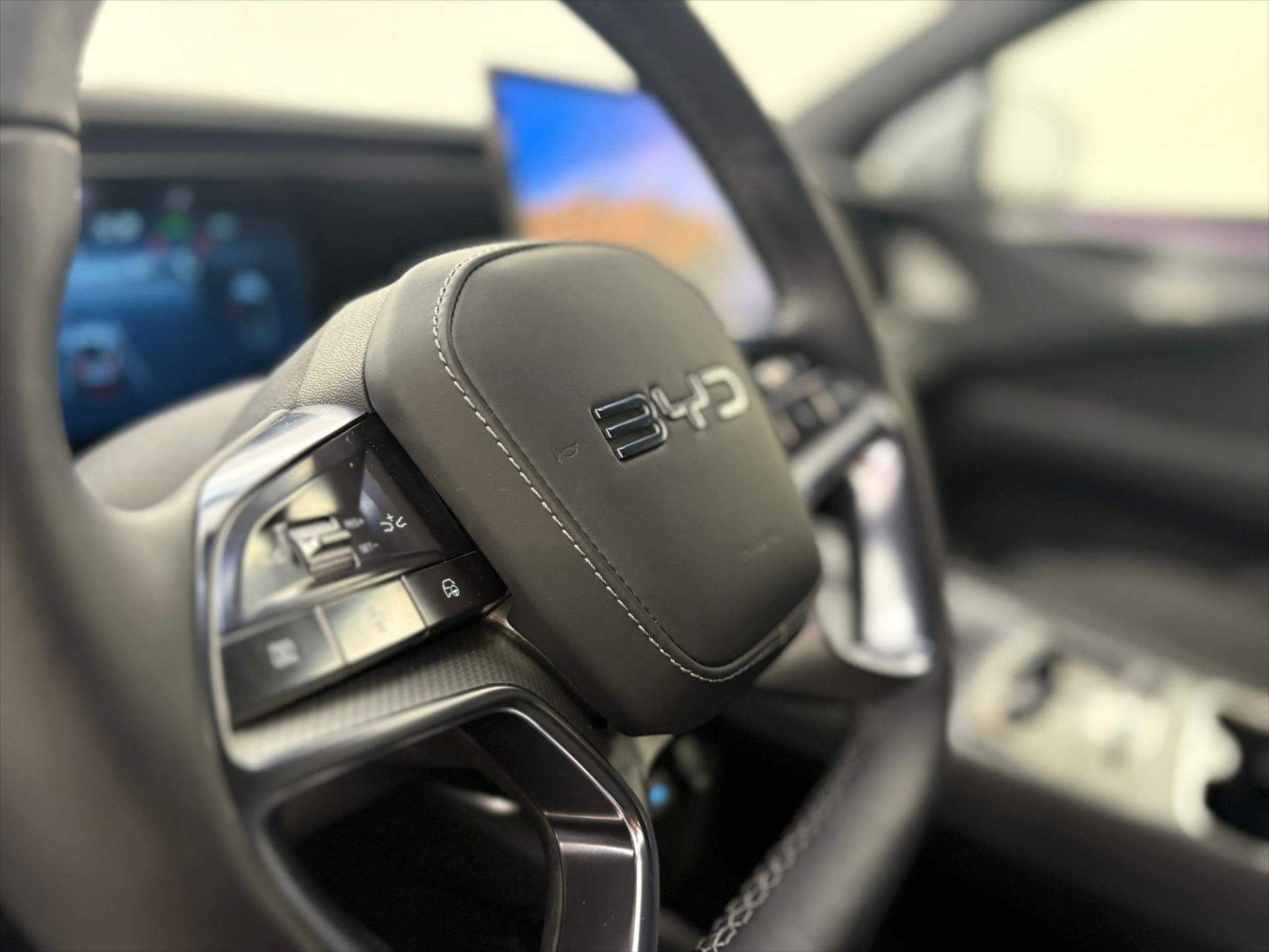 ***AKCE ZIMNÍ PNEU HANKOOK ZDARMA***Prémiové sportovní SUV s unikátní BLADE baterii LFP o kapacitě 91kWh s dojezdem až 616km. Zvukový systém Dynaudio® 12 reproduktorů Head-up displej Funkce V2L (Vehicle-to-Load) 2x klíč Smart a 1x klíč NFC Bezklíčový vstup a bezklíčové startování Inteligentní hlasové ovládání - 'Hi; BYD' 15.6' elektricky otočný dotykový displej DAB/FM WIFI Hotspot Přední zavazadlový prostor (Frunk). Jsme autorizovaný prodejce a servis vozů BYD Záruka 6 let / 150 000 km na celý vůz 8 let / 150 000 km na elektromotory 8 let / 250 000 km na trakční baterii 12 let bez omezení km na karoserii proti prorezavění.;