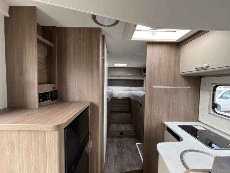 3. brzdové světlo; airbag řidiče a spolujezdce; ABS; EBD; ESP; dojezdová sada pro pneu - Fix & Go Kit; elektrický vstupní schůdek; lednice 98 l s mrazákem 11 l; nádrž čisté vody vč. bojleru 122 litrů; odpadní nádrž 92 litrů; tříhořákový vařič s nerezovým dřezem a skleněným krytem; vykonná baterie AGM 95 Ah pro obytnou část; záruka těsnosti nástavby 7 let;