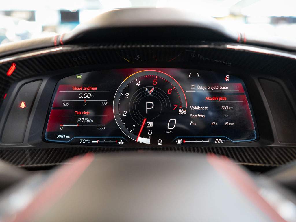 Nový Chevrolet Corvette Stingray Coupe C8 3LT Z51 Performance package s nájezdem 390km; motor 6.2 V8 DI VVT o výkonu 474 HP a krouticím momentem 613Nm. EU navi; Čeština. Zrychlení z 0-100 za 3.5s. Dvojspojková 8 stupňová AT převodovka. Magnetic Ride; 12' digi cluster; Z51 Sportovní package obsahující: posílené brzdy; samosvor; sportovní výfuk a tlumiče; Launch Control; 8' infortainment; Android Auto; Apple CarPlay; vyhřívané a odvětrávané kožené sedačky; vyhřívaný volant. Evropská záruka 3 roky.;