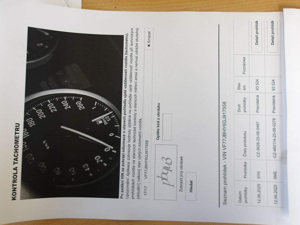 VF77JBHY6GJ917558 prověřit vozidlo online
