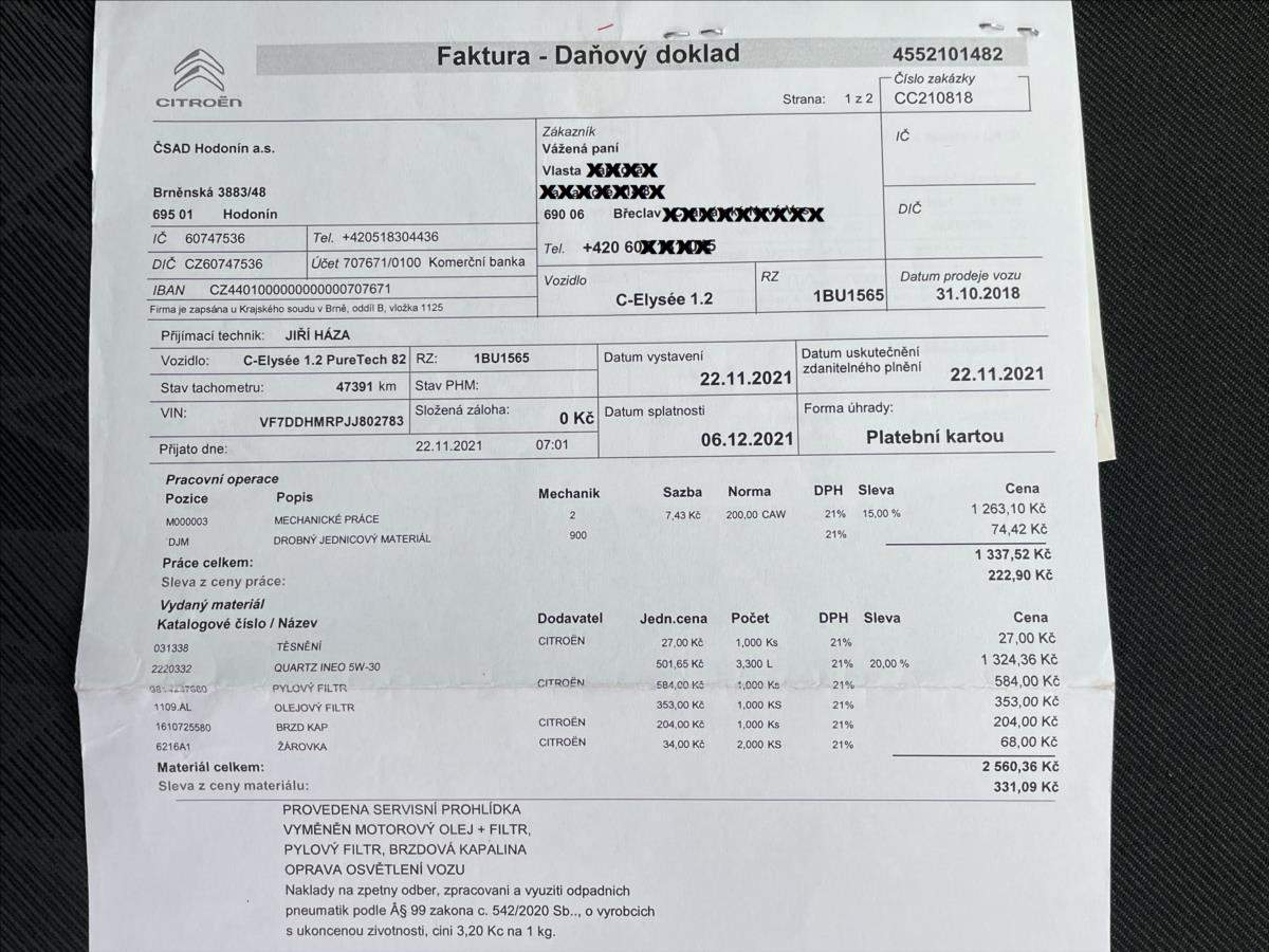 Možnost výhodného VIP financování vozu pro VÁS, nyní AKCE od 4,99% a prodloužené záruky až na 36 měsíců! více informací na 775 593 751, 773 990 751; První majitel; Spotřebitelský úvěr; 1. Reg. 13.11.2018! Garantované 105.479km! Certifikace kvality od TÜV-NORD! Možnost výhodného VIP financování vozu pro VÁS; nyní AKCE od 4; 99% a prodloužené záruky až na 36 měsíců! Zachovalý stav vozu! Původ ČR po prvním druhým majiteli! LED denní svícení; klimatizace; 2x el. okna a zrcátka; bluetooth; tempomat; palubní počítač; ESP+ASR; 4x airbag; plnohodnotné rezervní kolo; letní a zimní pneumatiky; radio CD+MP3; USB+AUX; VIN: VF7DDHMRPJJ802783; pravidelný servis včetně faktur a protokolů STK s doloženými km! Nabízíme výkup vozidla i na protiúčet a prohlídku vozidla na STK! Garance původu; prověřujeme poč. naj. km spol. CEBIA a CarVertical! Více na www.suprkaravip.cz;