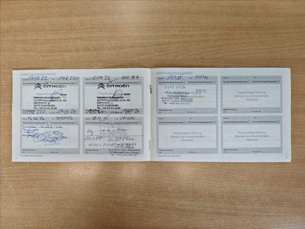 Druhý majitel; Velmi zachovalý vůz po druhém majiteli; koupený nový v CITROËN - HEINRICH MUNDERLOCH AUTOMOBILE GmbH; nehavarovaný ani jinak lakovaný; pravidelně vedená servisní kniha - poslední servisní prohlídka 4/2025 v 318.780km; 2x klíče; vše plně funkční. Možnost odpočtu DPH! Cena bez DPH: 289.173.55Kč;
