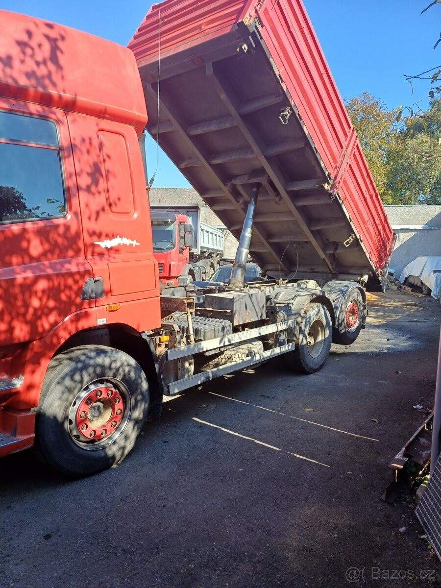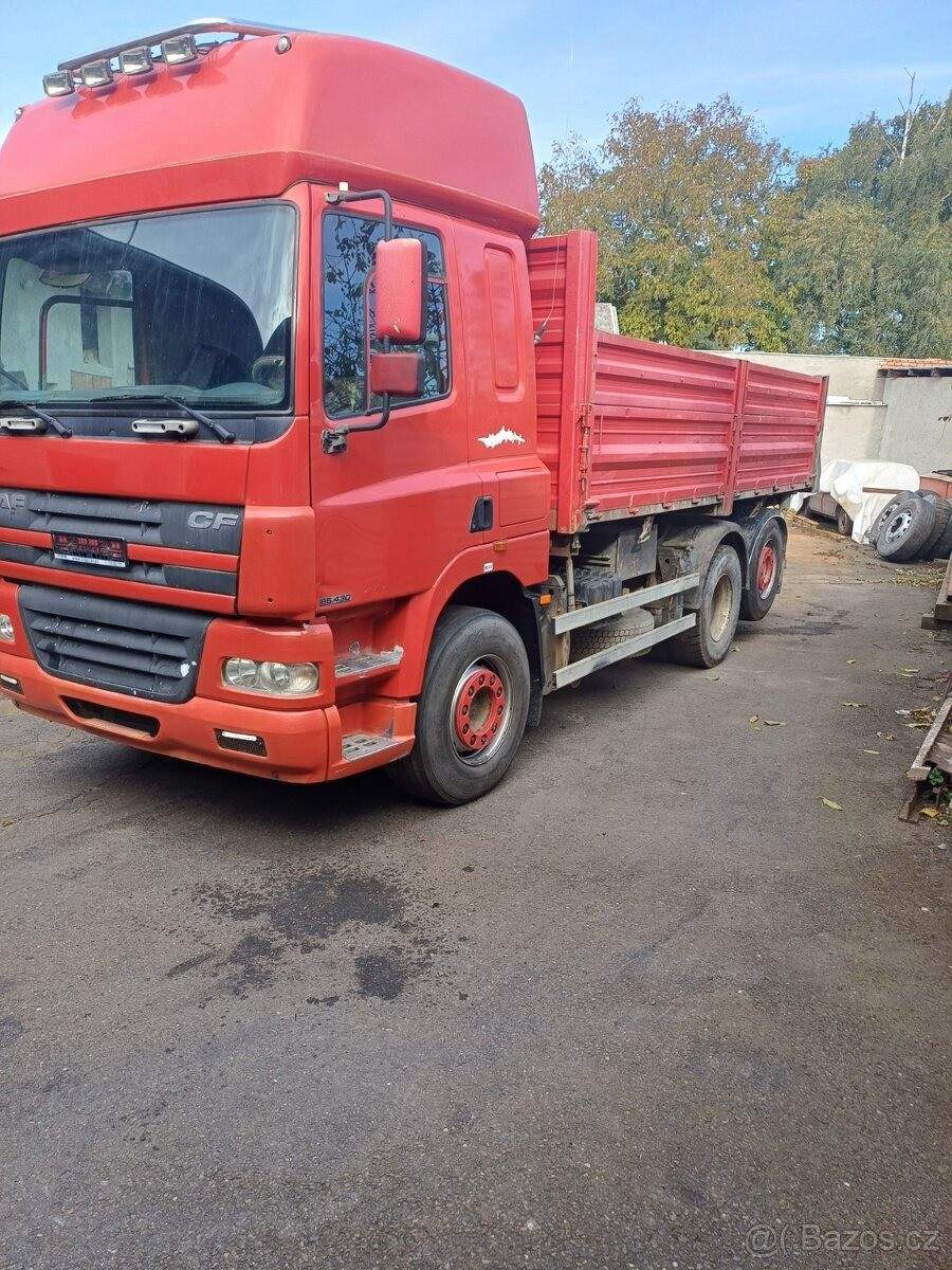 TEL: 777775203 OKR: PŘEROV Prodám Daf CF 85.430; 6x2; r.v 2005; najeto 983000 km. Klimatizace; nezávislé topení; intarder. v 950000 km GO převodovky a nová spojka. Přední náprava na listových pérech; prostřední a zadní zvedací měchy. Pohotovostní váha 11t; celková 26t; naložit se může 15t.;