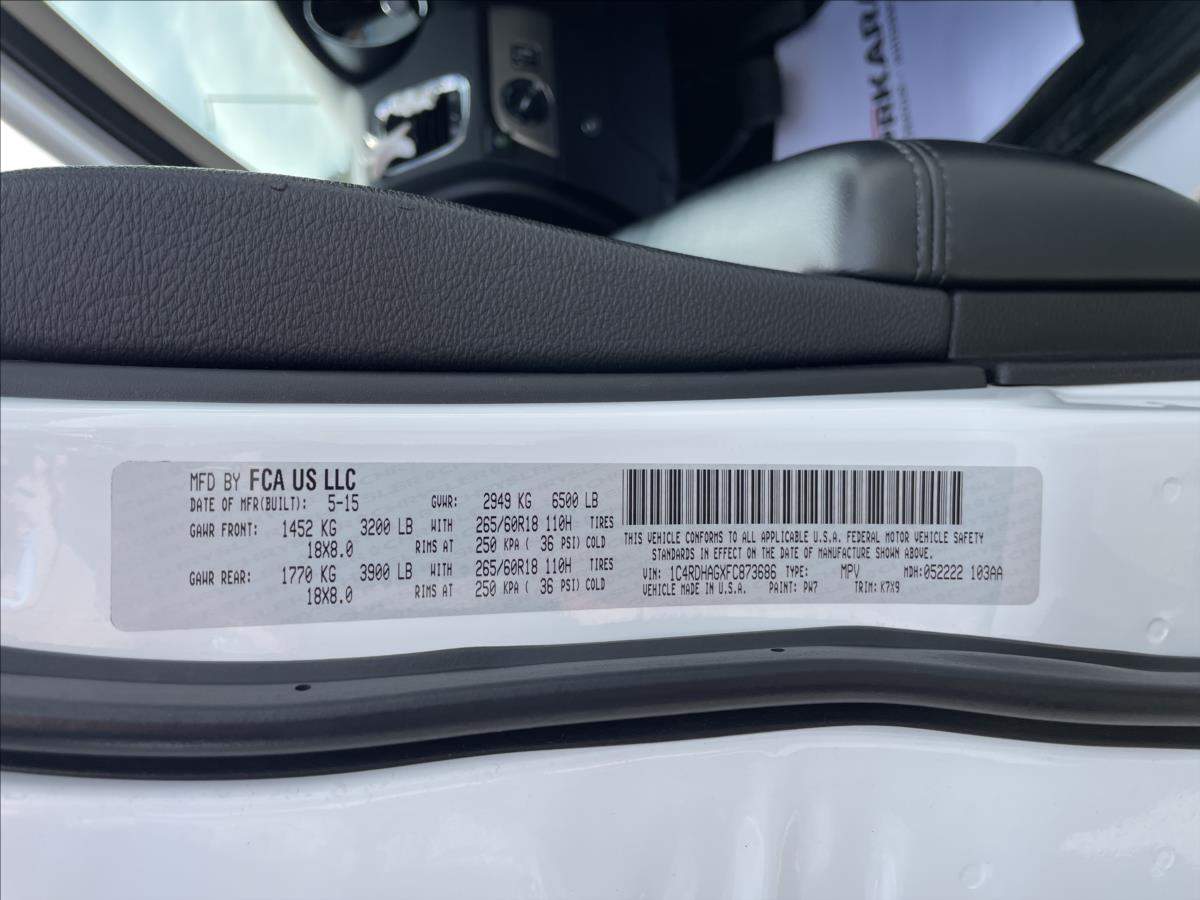 ONLINE PRODEJ s možností VIDEOPROHLÍDKY! Finacovaní, výkup a prodložení záruky až na 36 mésiců, více informací na 775 593 751, 773 990 751; Druhý majitel; Spotřebitelský úvěr; 1.Reg. 5/2015! Garantované km! Není možnost odpočtu DPH! Certifikace kvality od TÜV-NORD! Možnost výhodného financování vozu; nyní AKCE od 5; 49%! Zachovalý stav vozu! Spolehlivý a úsporný motor Chrysler Pentastar v komb. Benzin-LPG! 7-Sedadel; 8-ti st.převodovka; Xenonové světlomety; 3-zónová klimatizace; bluetooth; hlasové ovládaní; tempomat; litá kola; parkovací kamera a senzory; vyhřívaná sedadla; vyhřívaný volant; bez klíčové startování a odemykání; elektrické nastavení sedadlo řidiče; polohovací zádní sedadel; zatmavěná zadní skla; radio+USB+AUX+SD Karta; VIN: 1C4RDHAGXFC873686; pravidelný servis do 205tkm 10/2024 včetně faktur a protokolů STK s doloženými km! Nabízíme výkup vozidla i na protiúčet a prohlídku vozidla na STK! Garance původu; prověřujeme poč. naj. km spol. CEBIA a CarVertical! Více na www.suprkaravip.cz;