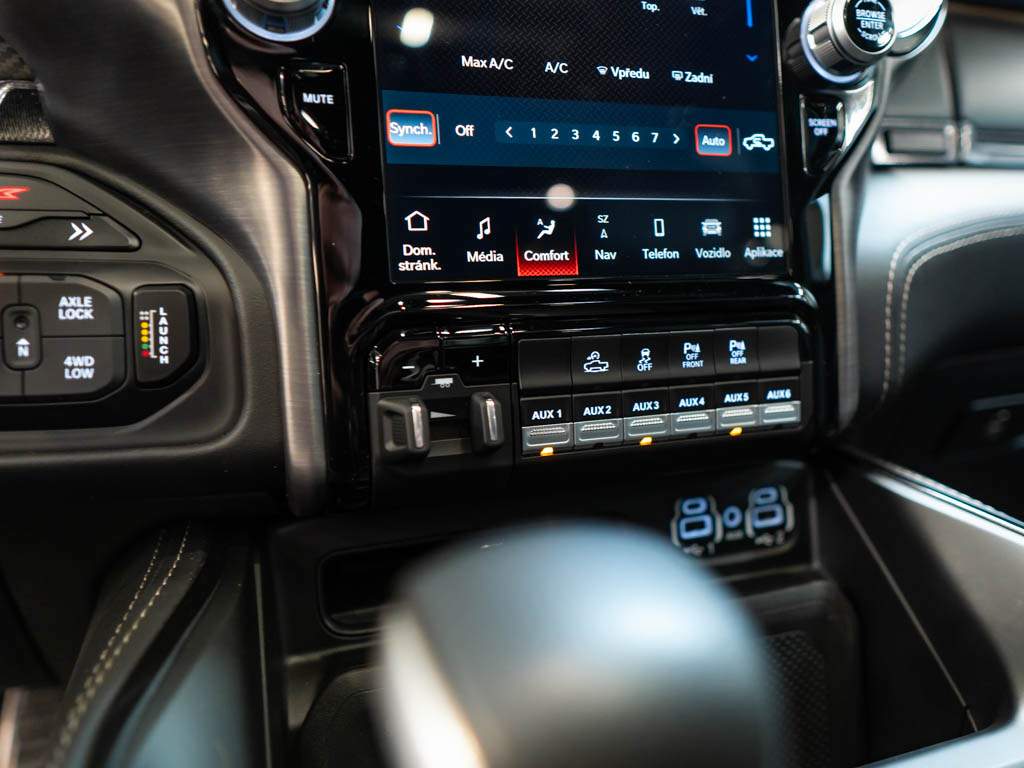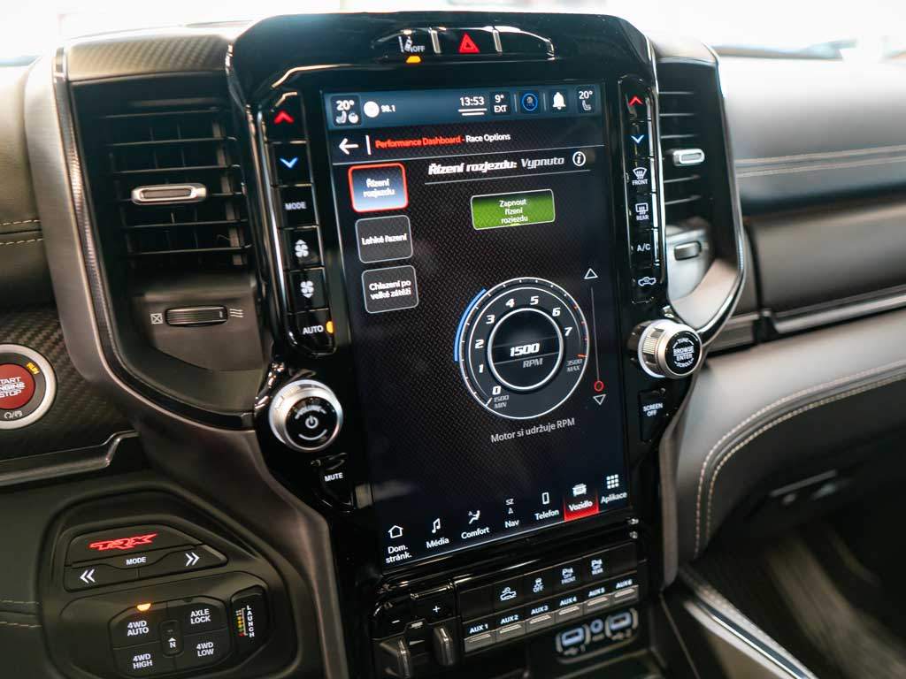 První majitel; Ram 1500 TRX. Hellcat motor 6.2l V8 HEMI Supercharged s 712k a kroutícím momentem 880 N.m. Obrovský kompresor s tlakem 11 PSI. Bilstein Black Hawk tlumiče; jízdní režimy; launch control. Zrychlení 0-100 za 4.5s. Elektrický kryt korby; EU NAVI; Air Horn. Interiér v kůži; vyhřívané i chlazené sedačky; 12' Uconnect 5 infotainment system; Harman Kardon reproduktory; Bed Utility Group; Dual panorama a další!;