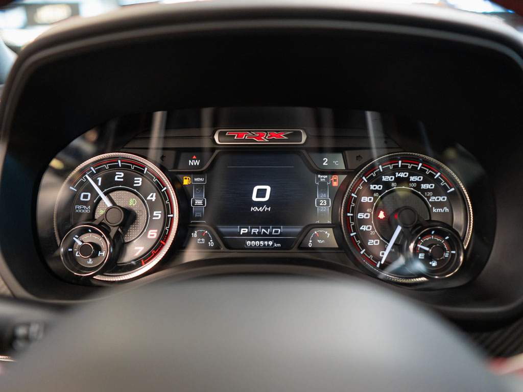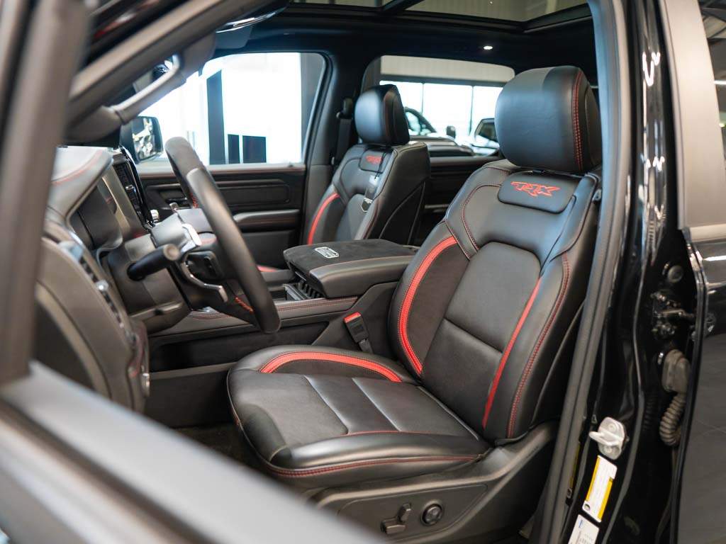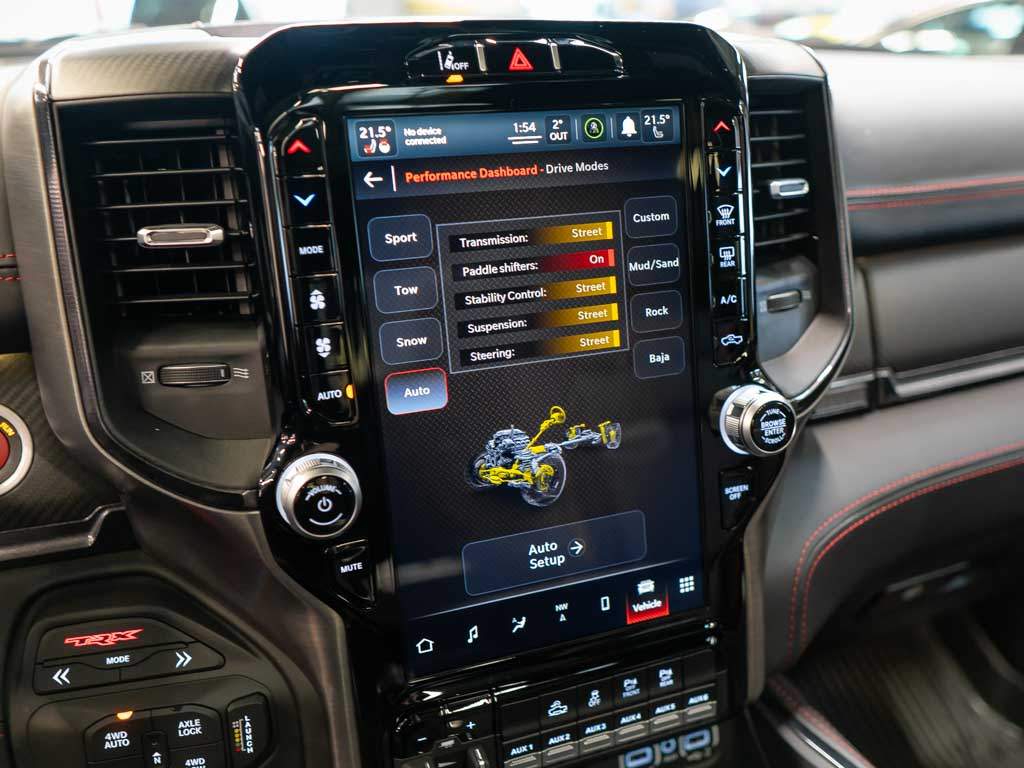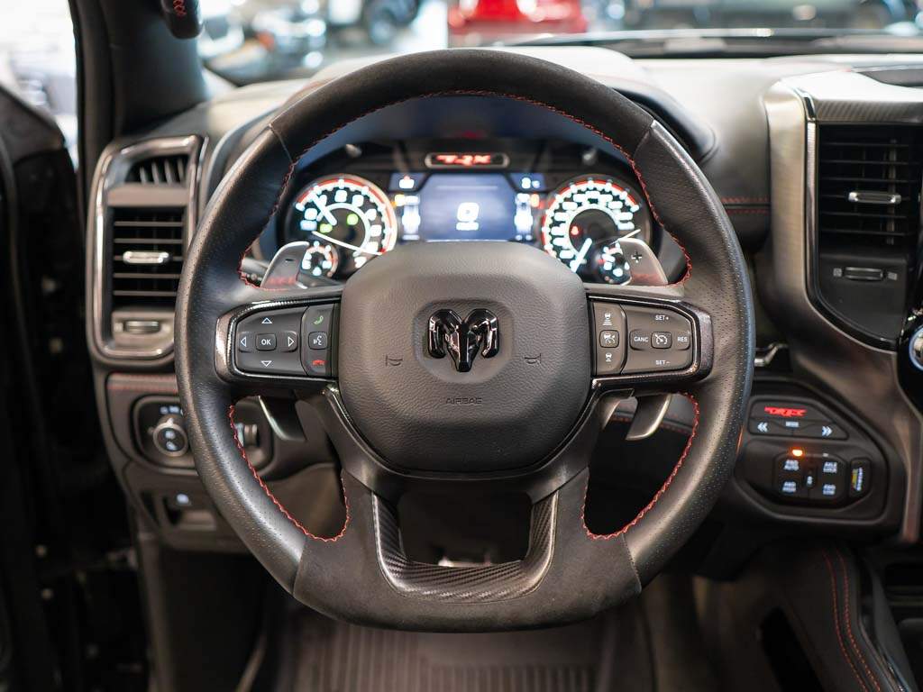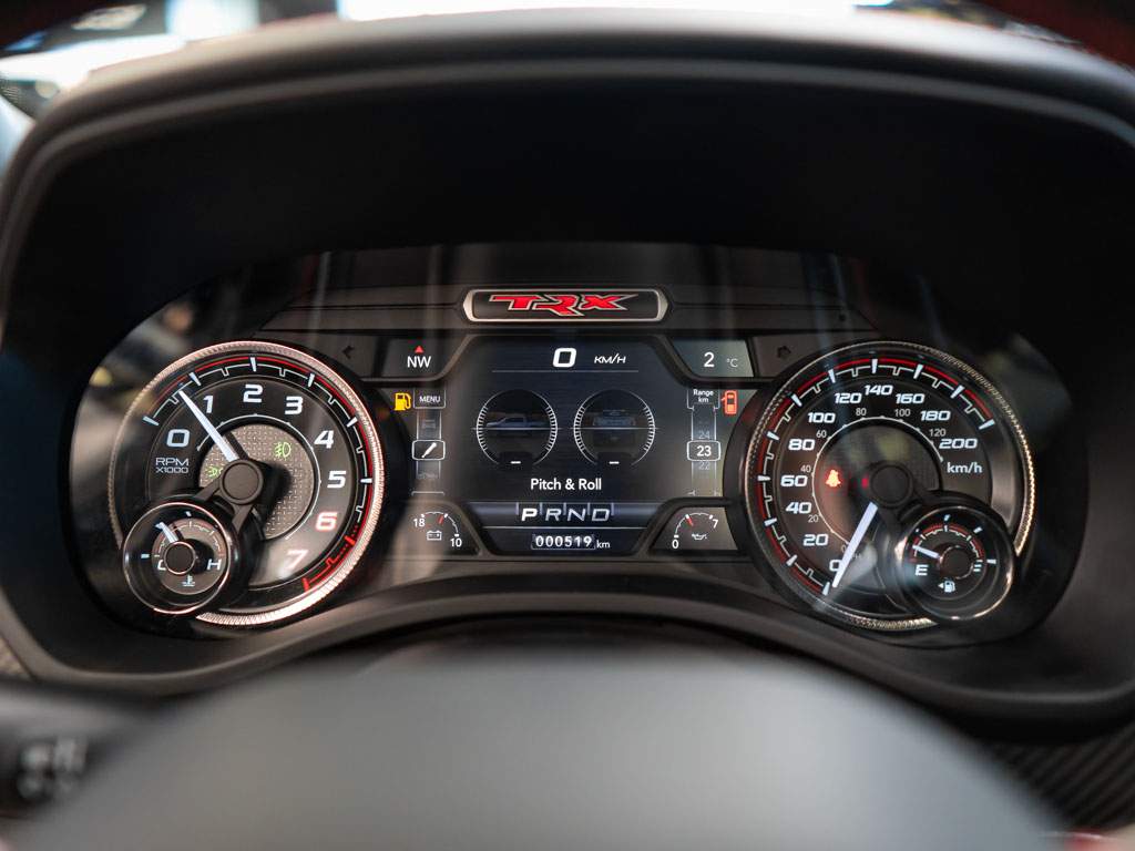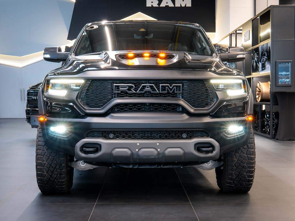 Nový Ram 1500 TRX. Hellcat motor 6.2l V8 HEMI Supercharged s 712k a kroutícím momentem 880 N.m. EU Navi. Kompresor s tlakem 11 PSI. Bilstein Black Hawk tlumiče; jízdní režimy; launch control. Zrychlení 0-100 za 4.5s. Interiér v kůži; vyhřívané i chlazené sedačky; 12' Uconnect 5; Harman Kardon; Bed Utility Group; Panorama. Nové neregistrované vozidlo s 519 km; modelový rok 2022. ZÁRUKA 2 ROKY / 100.000 km; možnost prodloužit na 5 let.;