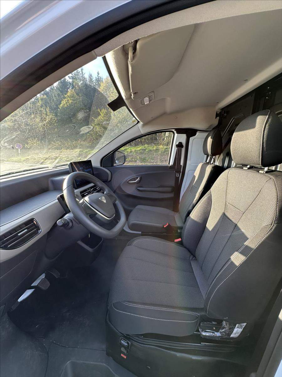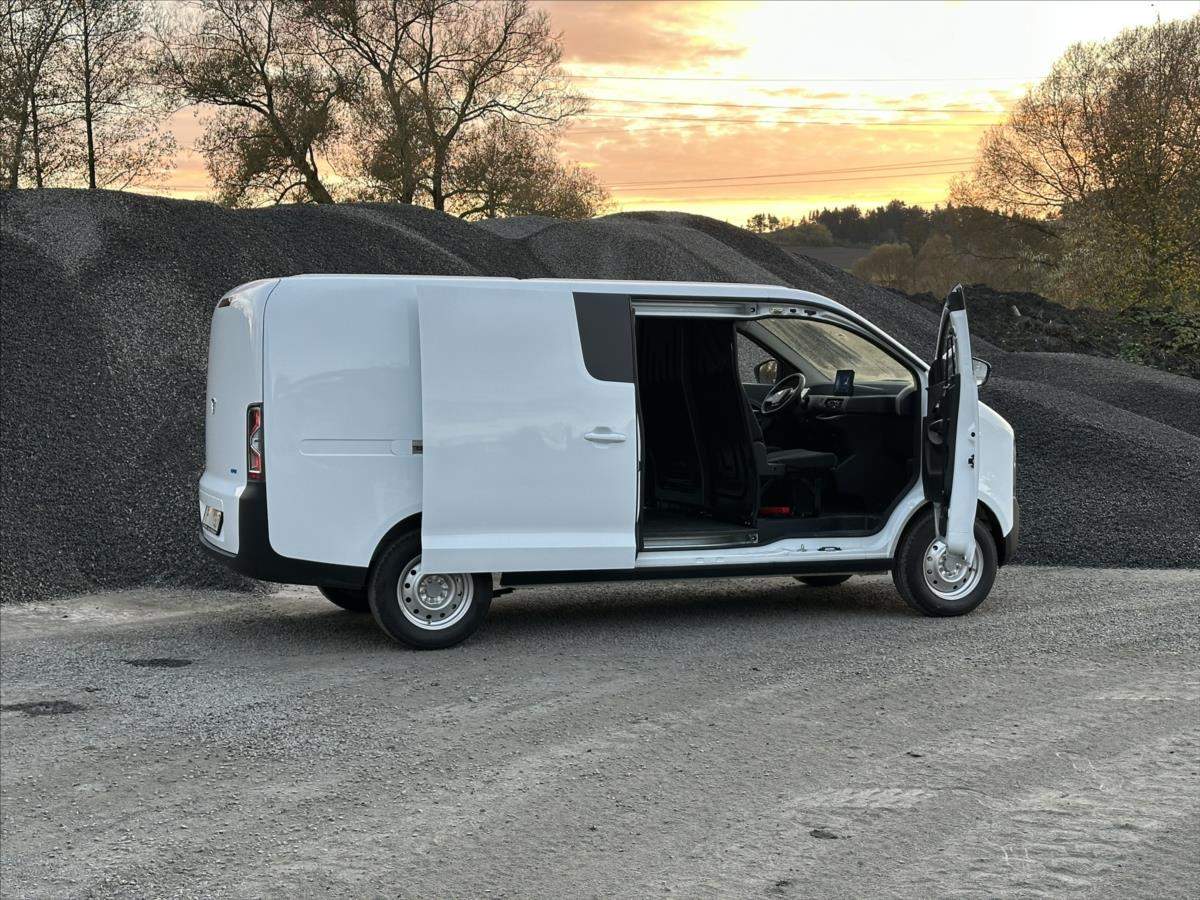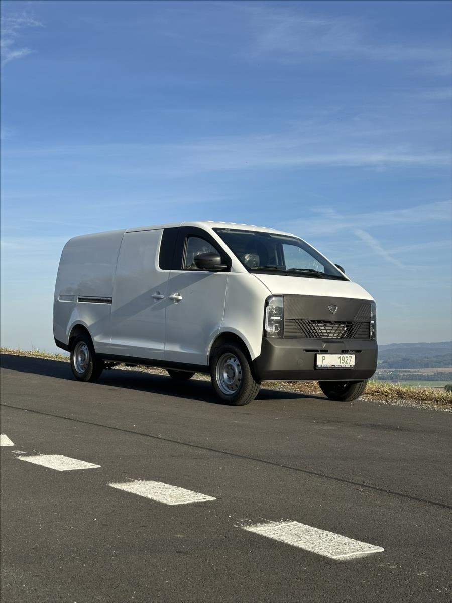 Leasing možný; Spotřebitelský úvěr možný; ELBLESK EV48 VAN r.v. 2024 0 KM Elektro Max. objem 7 m3 Nosnost 1.430 KG Dojezd až 300 KM Hmotnost 1570 KG (max. 3000 KG) Funkce řízení jedním pedálem Možnost vysazení předního sedadla Možnost přechodu z kabiny do nákl. prostoru Parkovací kamera Zvukové senzory Automatické svícení; LED denní svícení Elektricky okna 2x LCD displej s infotainmentem USB a 12V zásuvka; Bluetooth Automatické řazení R - N - D Režimy jízdy ECO - NORMAL - SPORT 5 přihrádek v kabině;