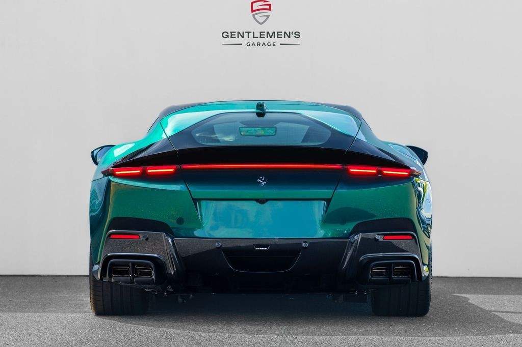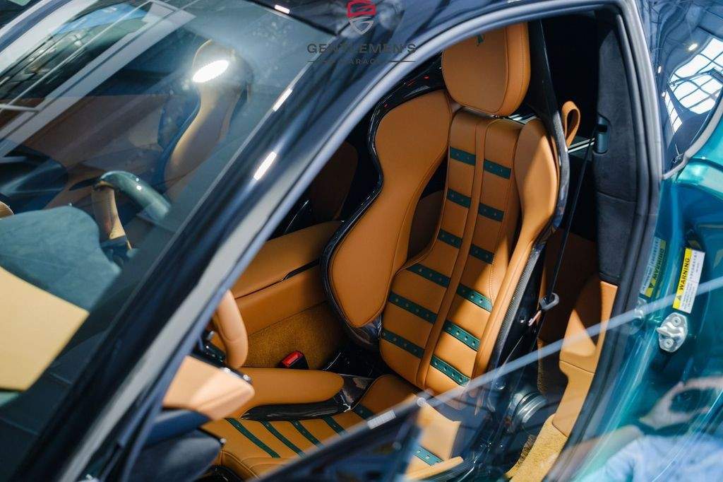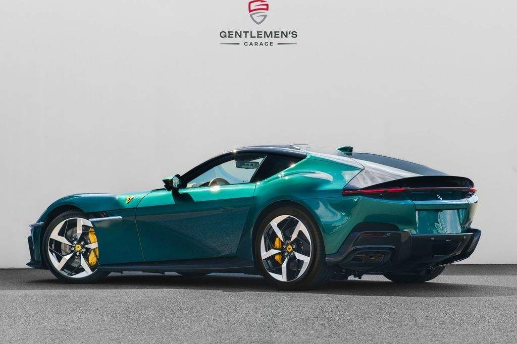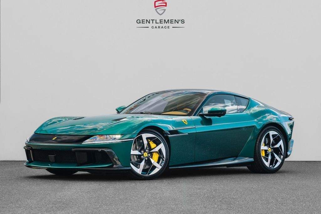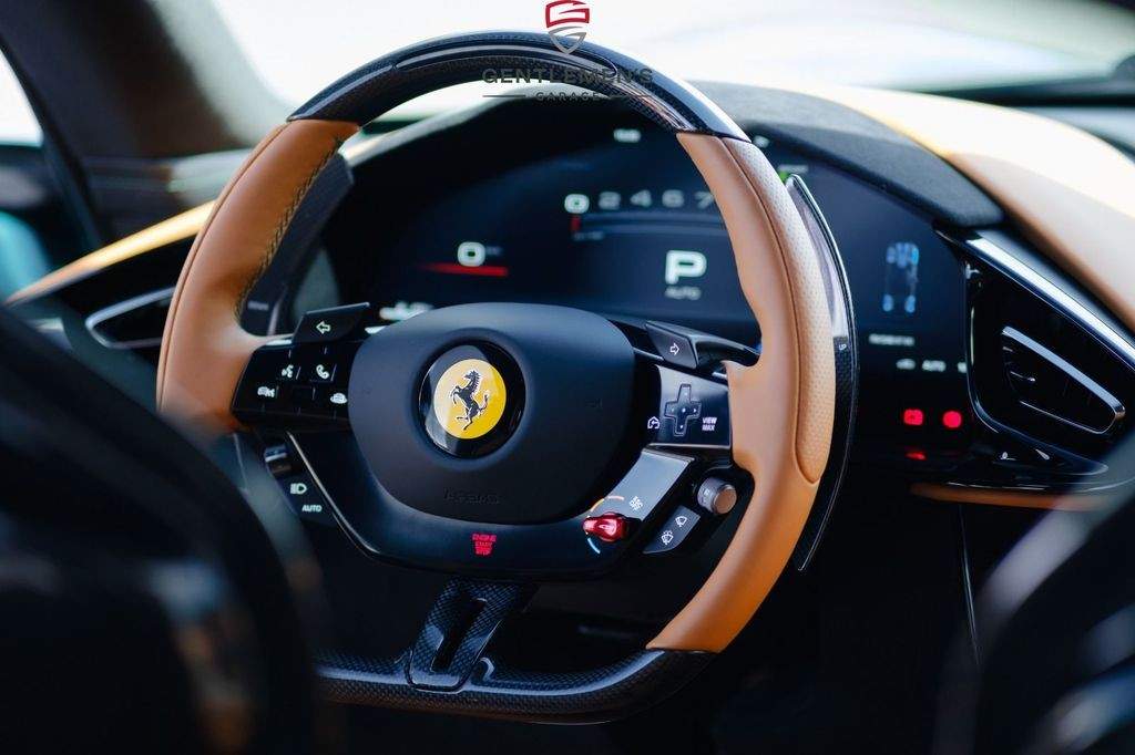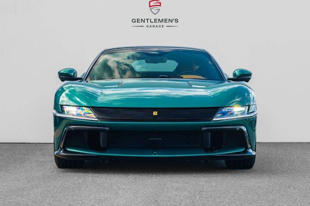 Front radar with Adaptive Cruise Control (ACC) Air quality sensor Passenger display Surround view system Automatic boot lid system Large size interface Wireless smartphone charger Digital rear-view mirror MyFerrari Connect activated MyFerrari Connect readiness hardware Emergency call system Two-tone bodywork – Nero DS 1250 Special 2-layer exterior colour – Verde Pino 18 (ExtrArange) Yellow brake calipers Rear diffuser in carbon fibre Carbon fibre underdoor covers Exterior sill kickplates in carbon fibre Carbon fibre front spoiler Gloss black wheels Titanium wheel bolts Michelin tyres Scuderia Ferrari shields Active Matrix LED headlights Black tailpipe tips Daytona racing seats Leather passenger compartment inserts in Cuoio 4609 Coloured upper dashboard in Cuoio 4609 Cavallino stitched on headrests in Verde 1097 Leather perforated inserts Central part of seats in leather Carbon fibre steering wheel with LEDs Coloured steering wheel in Cuoio 4609 Heated steering wheel Coloured standard stitching in Verde 1097 Coloured leather in Verde 4305 Upper part of centre console in carbon fibre Aluminium driver and passenger footrests;