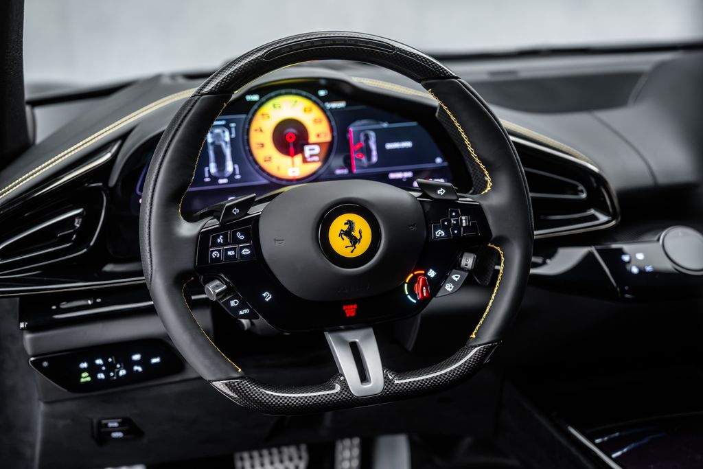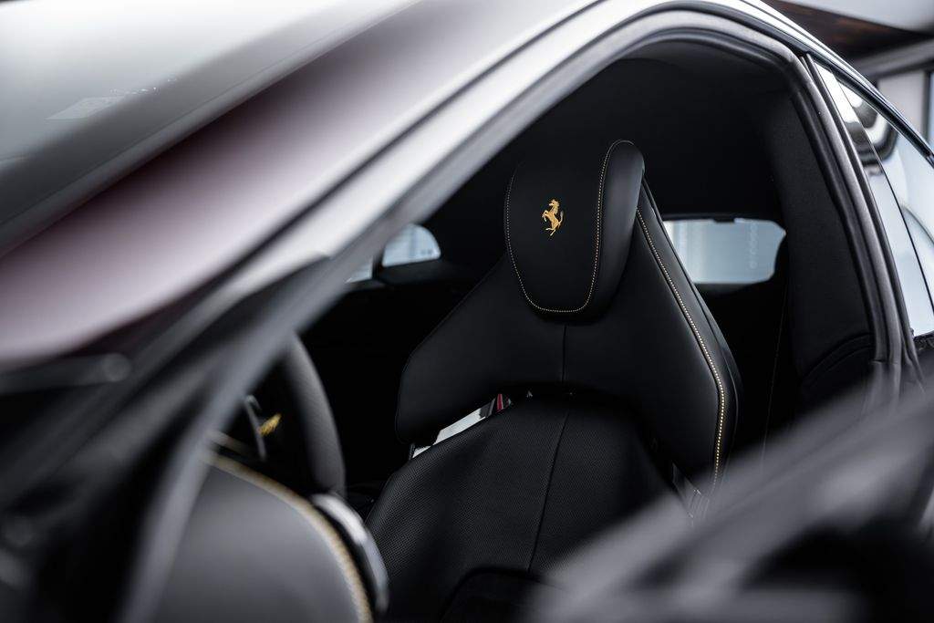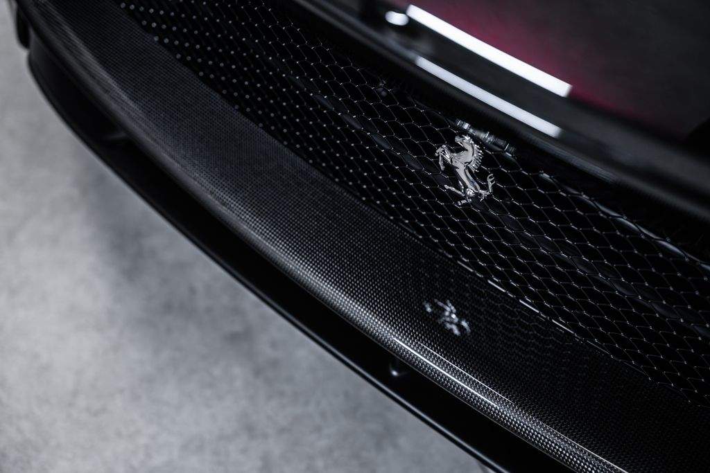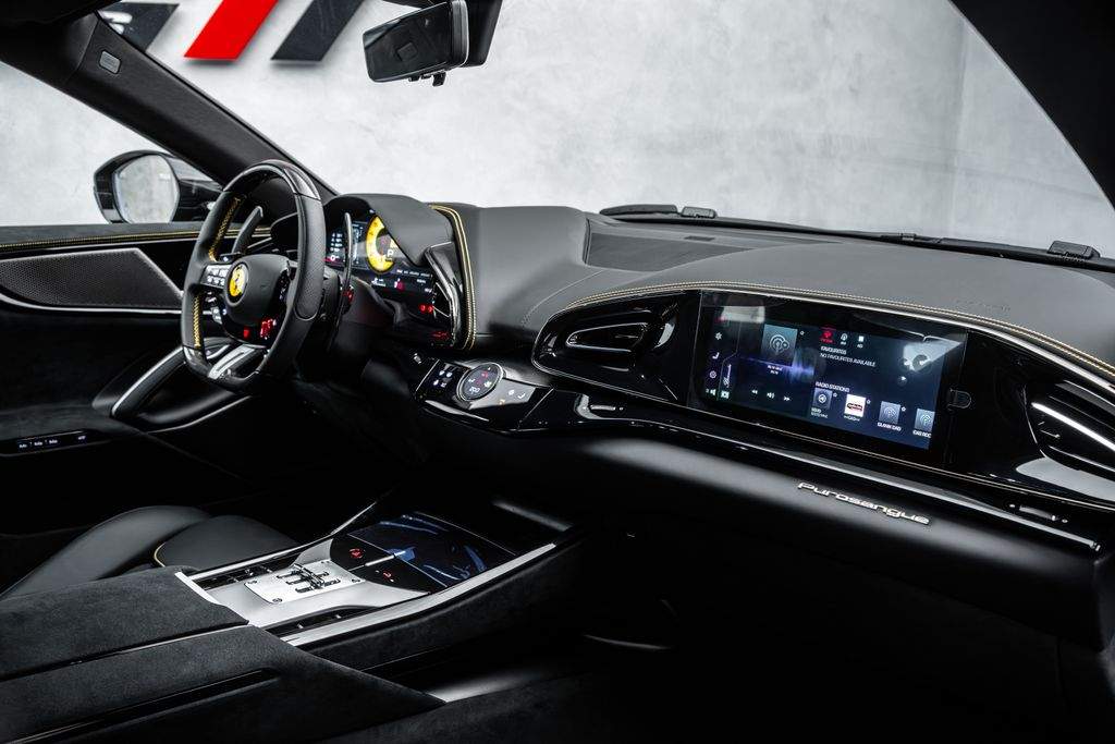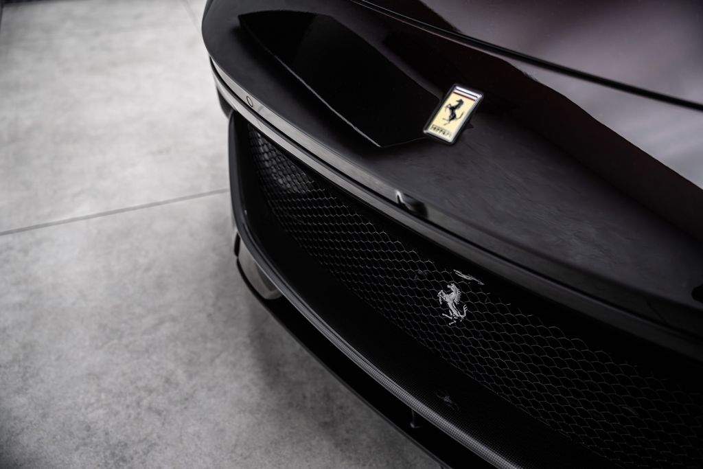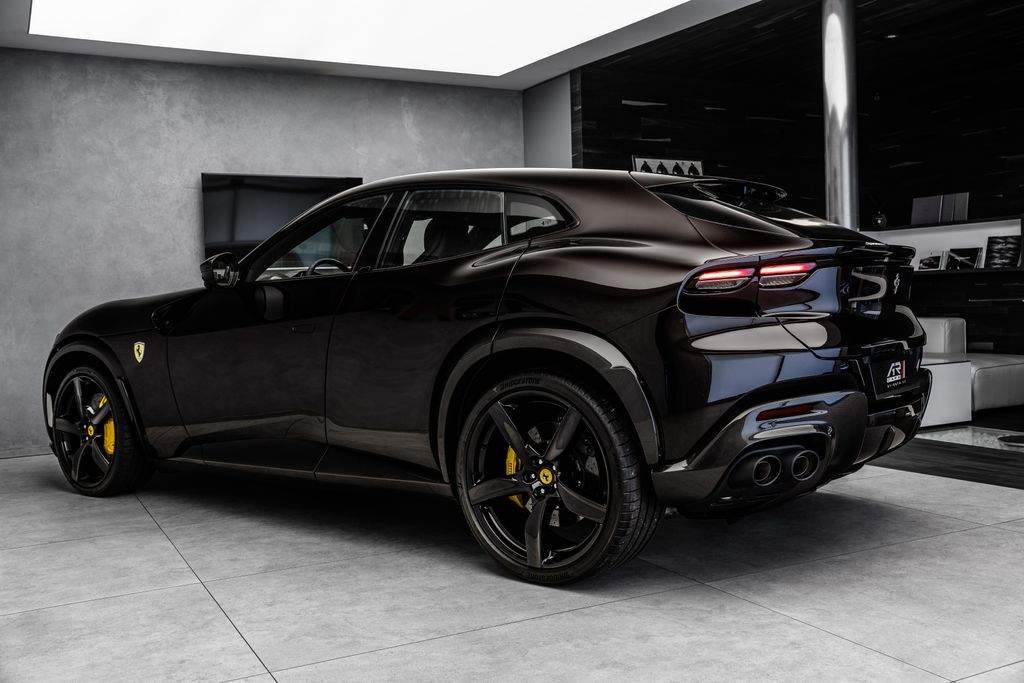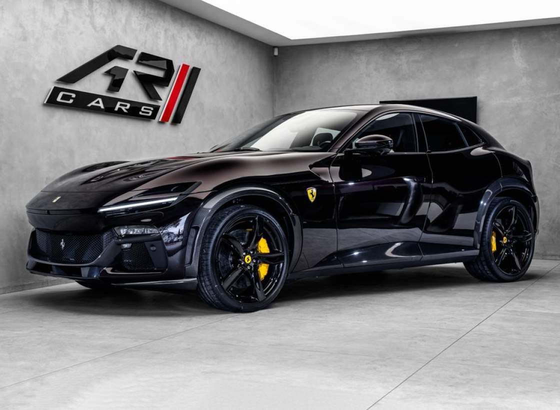 Ostrava; Extra výbava: Air quality sensor; Yellow brake callipers; Carbon fibre wheelhouse flares; Carbon fibre rear difusor; Carbon fibre under door cover; Carbon fibre exterior sill kickplate; Front lift; Cavallino stitched on headrest; Black tailpipe tips; Carbon fibre rear spoiler; Luggage compartment kit; Front seats massage + ventilation; Carbon fibre steering wheel + LEDs; Scuderia Ferrari shields; Digital rv mirror; Special Paint Neroo Purosangue; Glossy black wheels; Rear seat vent. + heating; Smartphone interface; JBL Audio; Yellow special stitching; Heated steering wheel; 360° camera surround view; Bridgestone tires; Wireless smartphone charger; Matrix headlights;;