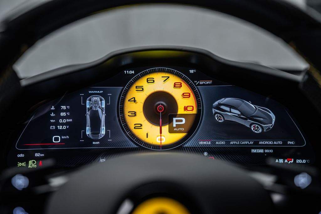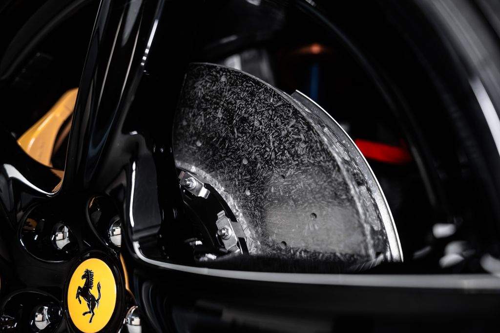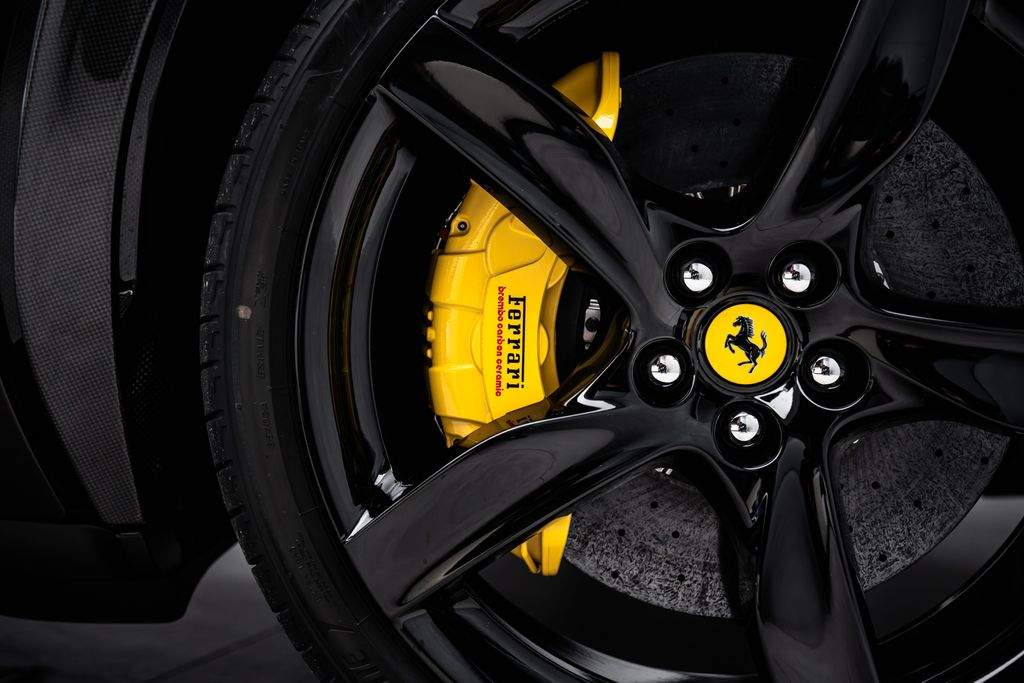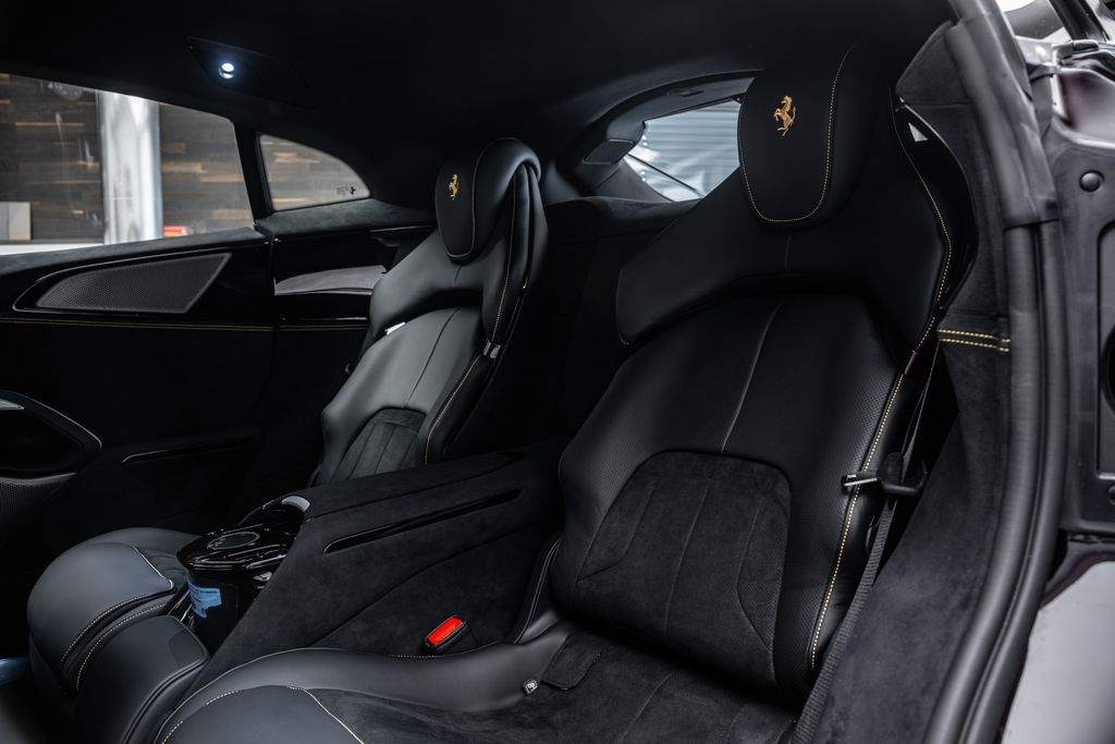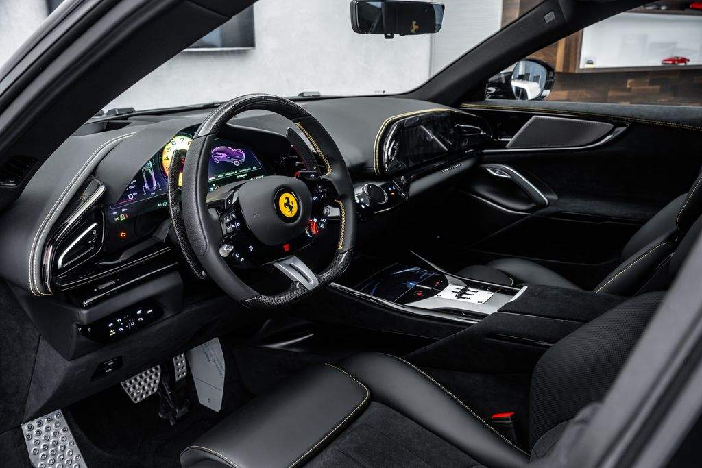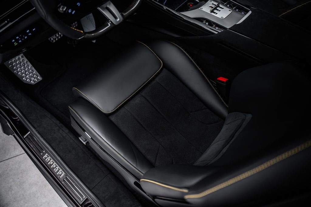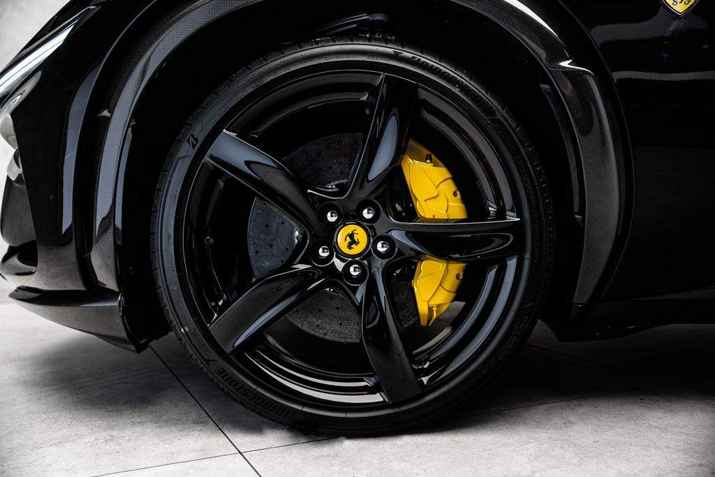 Ostrava; Extra výbava: Air quality sensor; Yellow brake callipers; Carbon fibre wheelhouse flares; Carbon fibre rear difusor; Carbon fibre under door cover; Carbon fibre exterior sill kickplate; Front lift; Cavallino stitched on headrest; Black tailpipe tips; Carbon fibre rear spoiler; Luggage compartment kit; Front seats massage + ventilation; Carbon fibre steering wheel + LEDs; Scuderia Ferrari shields; Digital rv mirror; Special Paint Neroo Purosangue; Glossy black wheels; Rear seat vent. + heating; Smartphone interface; JBL Audio; Yellow special stitching; Heated steering wheel; 360° camera surround view; Bridgestone tires; Wireless smartphone charger; Matrix headlights;;