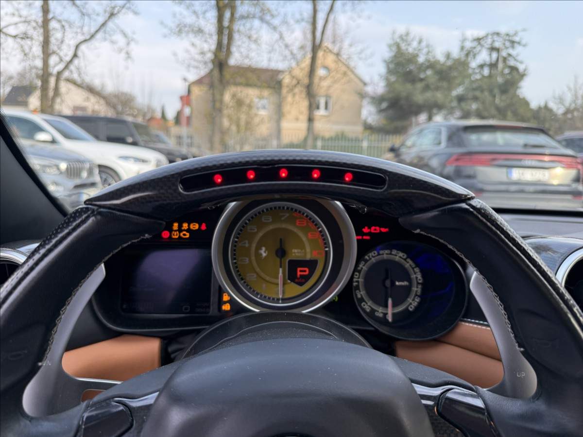 Druhý majitel; Leasing možný; Úvěr možný; VOZIDLO NENÍ NA BAZARU; JE ZAPARKOVANÉ V GARÁŽI; VOLAT DEN PŘEDEM; Emblémy na blatnících; alu 20''; Loga Ferrari v hlavových opěrkách; Volant LED - karbon/kůže; Karbonová pádla; Hliníkový nášlap u spolujezdce; iPod/iPhone/iPad redukce; Senzory tlaku a teplotypneu; Magnetické odpružení; Parkovací senzory; Sedačky Daytona atd.....; další výbava:;