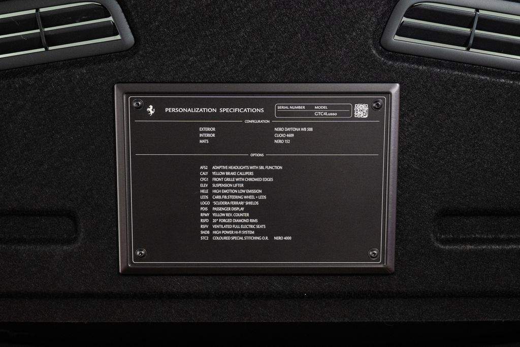 Číslo inzerce: ZL.xxx.9871; Adaptivní světlomety; Žluté brzdové třmeny; Přední maska chladiče s chromovanými okraji; Zvedací systém podvozku (Front Lift); Systém High Emotion Low Emission; Karbonový volant s LED diodami; Znak „Scuderia Ferrari“ na blatnících; Displej pro spolujezdce; Otáčkoměr ve žlutém provedení; 20' kovaná kola Diamond; Plně elektricky nastavitelná a ventilovaná sedadla; High Power Hi-Fi audiosystém;