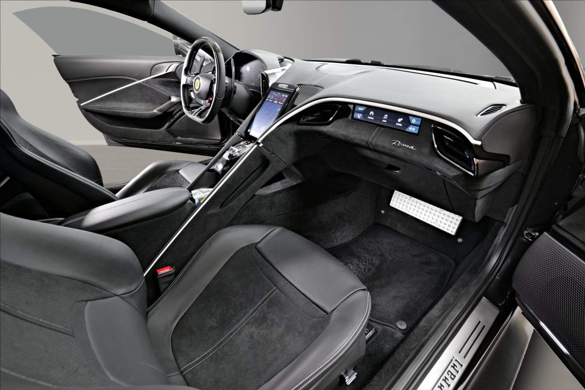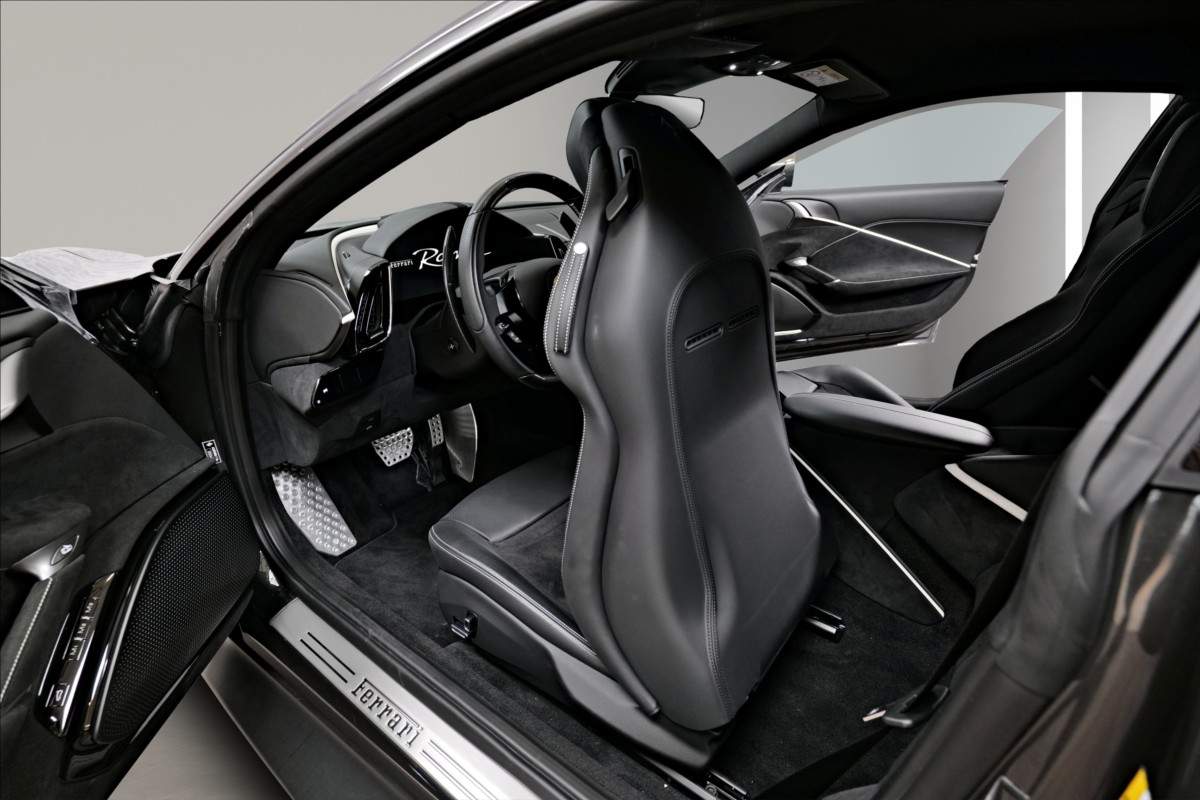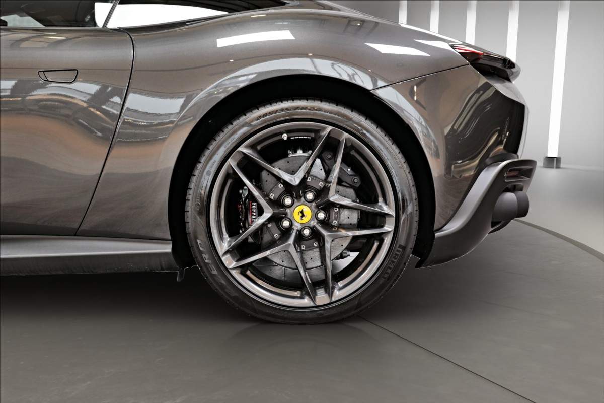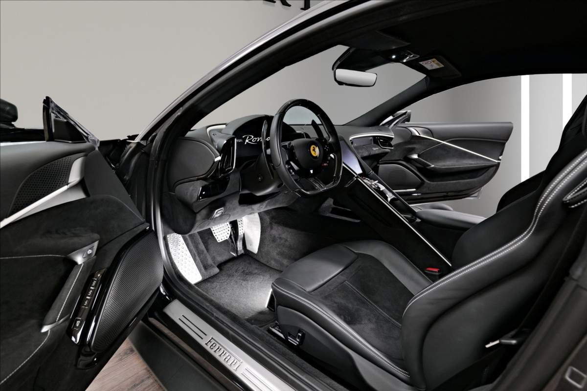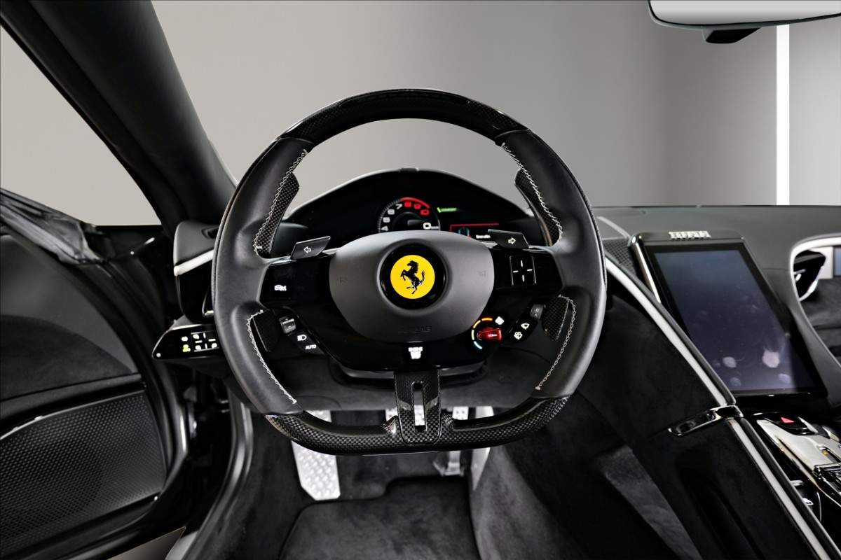 Dobrý den; nabízíme Vám k prodeji Ferrari Roma lakované v šedé metalické barvě - Ferrari historical colours - Canna di Fucile. Interiér vozidla je v černém koženém provedení. Mezi hlavní prvky výbavy patří: Full ADAS systém - adaptivní tempomat; hlídání jízdních pruhů; hlídání mrtvého úhlu. Karbonový volan s LEDS; vyhřívanná a chlazená sedadla; vihřívané přední sklo a další. Pokud byste měli zájem o porhlídku vozu; případně více informací; jsme Vám k dispozici.;