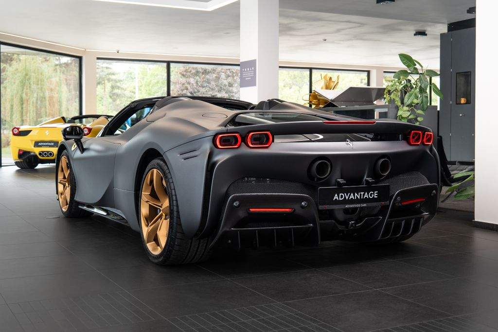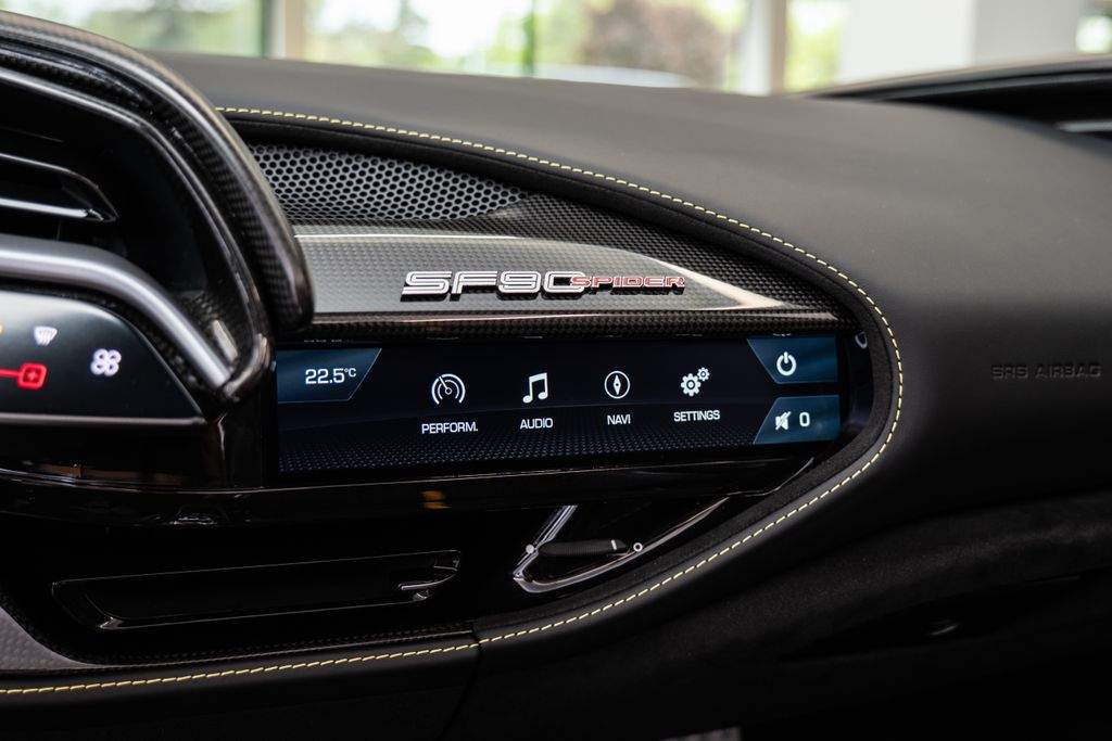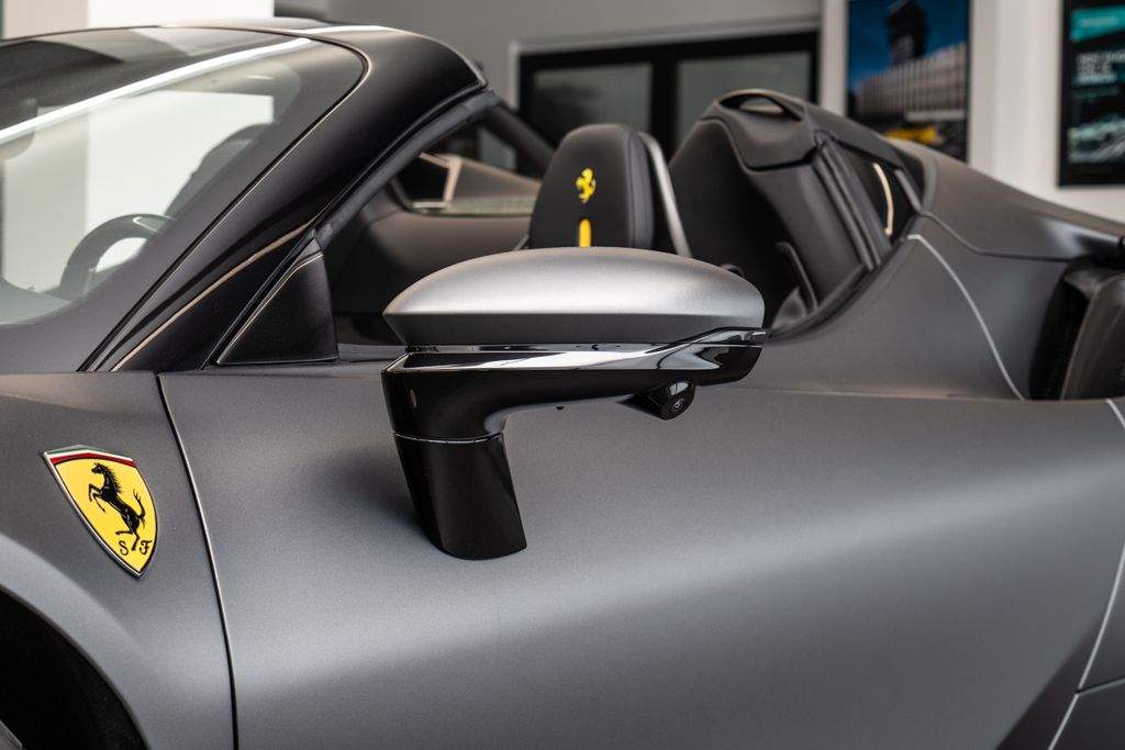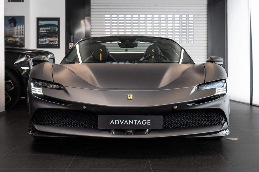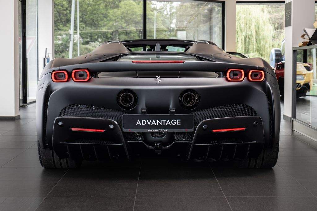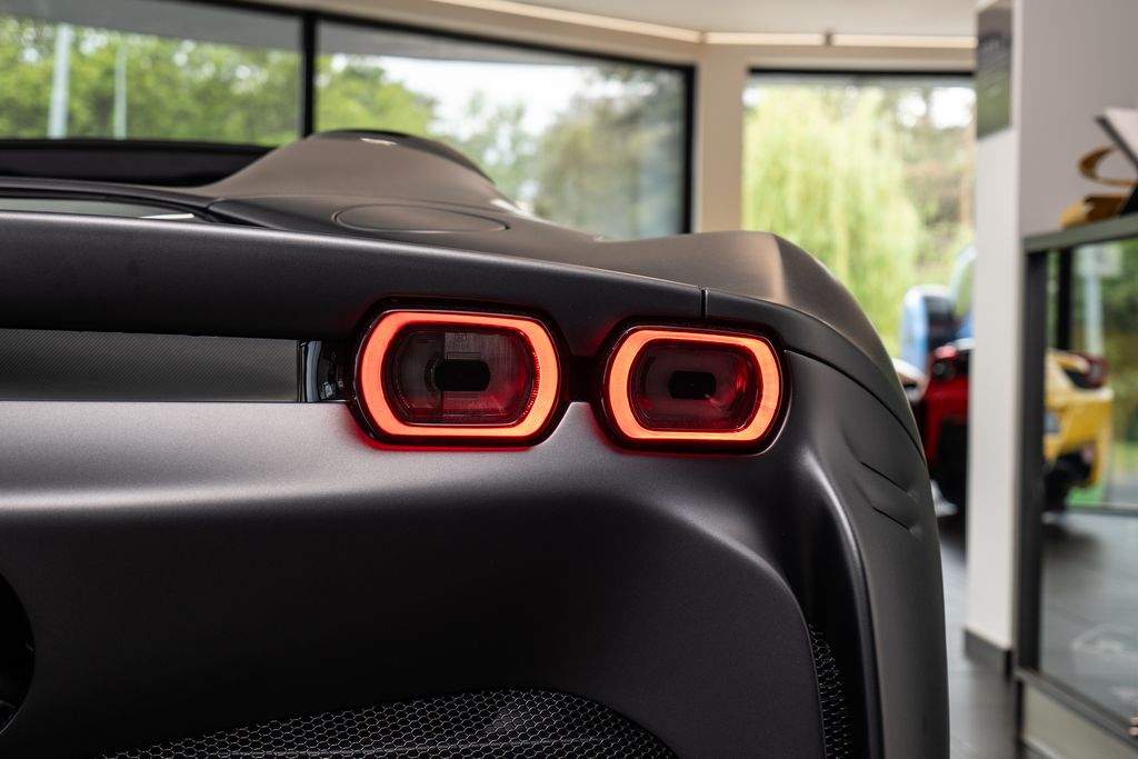 Přední radar s adaptivním tempomatem; Adaptivní systém předních světlometů; Středová část sedadel v černé Alcantaře; Dvoubarevná karoserie (černá Nero DS 1250); Zadní radar; Brzdové třmeny v barvě Silverstone Grey; Přední spoiler z karbonu; Zadní horní obložení z karbonu; Zadní difuzor z karbonu; Spodní kryt vozu z karbonu; Karbonové zóny na volantu s LED diodami; Karbonový kryt přístrojového panelu; Karbonové výplně dveří; Karbonové prahy dveří s logem Ferrari; Horní část středového tunelu z karbonu; Kožené detaily pro zadní spolujezdce (výbava Extrarange; kůže Giallo 113256); Dekorace „Extrarange“ z kůže Giallo 113256; Aktivované připojení MyFerrari Connect; Karbonové dekory přístrojové desky; Přední zvedání vozu (Front Lift); Vyšitý znak Cavallino na opěrkách hlavy (nití v barvě Giallo 0113); Černé koncovky výfuku; Přední spoiler z karbonu; Navigace a konektivita MyFerrari; Znak „Scuderia Ferrari“ na blatnících; Vnitřní elektrochromatická zpětná zrcátka; Přední a zadní parkovací senzory; Speciální matné barvy (Matte Grigio Silverstone); 20' kovaná kola v tmavém odstínu; Matné zlaté ráfky (Matte Gold); Závodní karbonová sedadla; Zvedák pro závodní použití; Prémiový audiosystém Hi-Fi; Rozšířená personalizace (Atelier); Barevné kontrastní prošívání (nití v barvě Giallo 0113); 360° kamera s funkcí „Surround View“; Titanové šrouby kol;