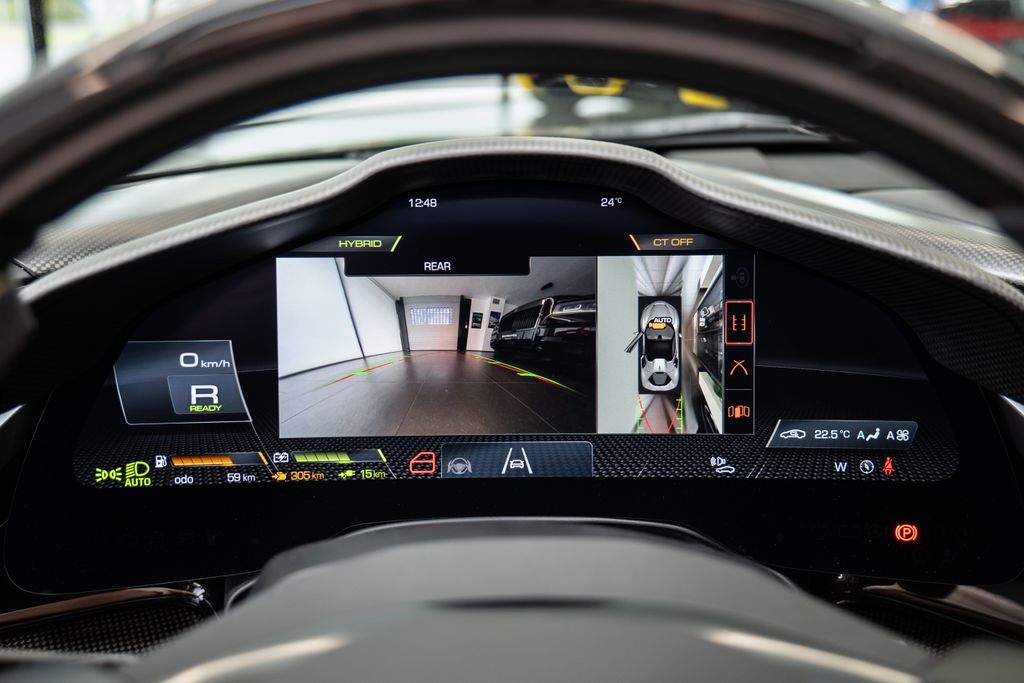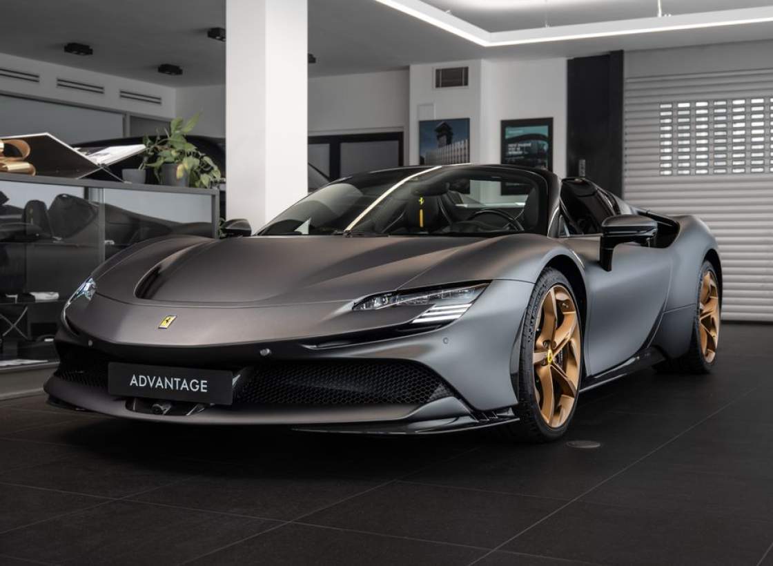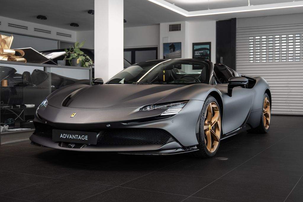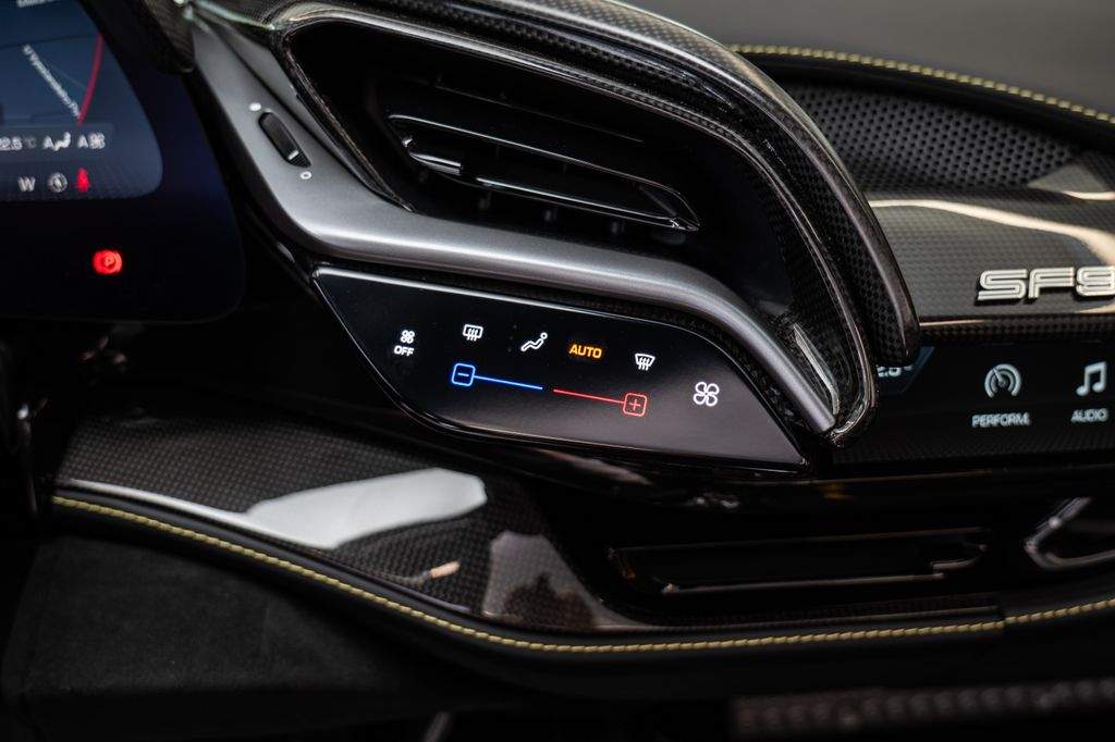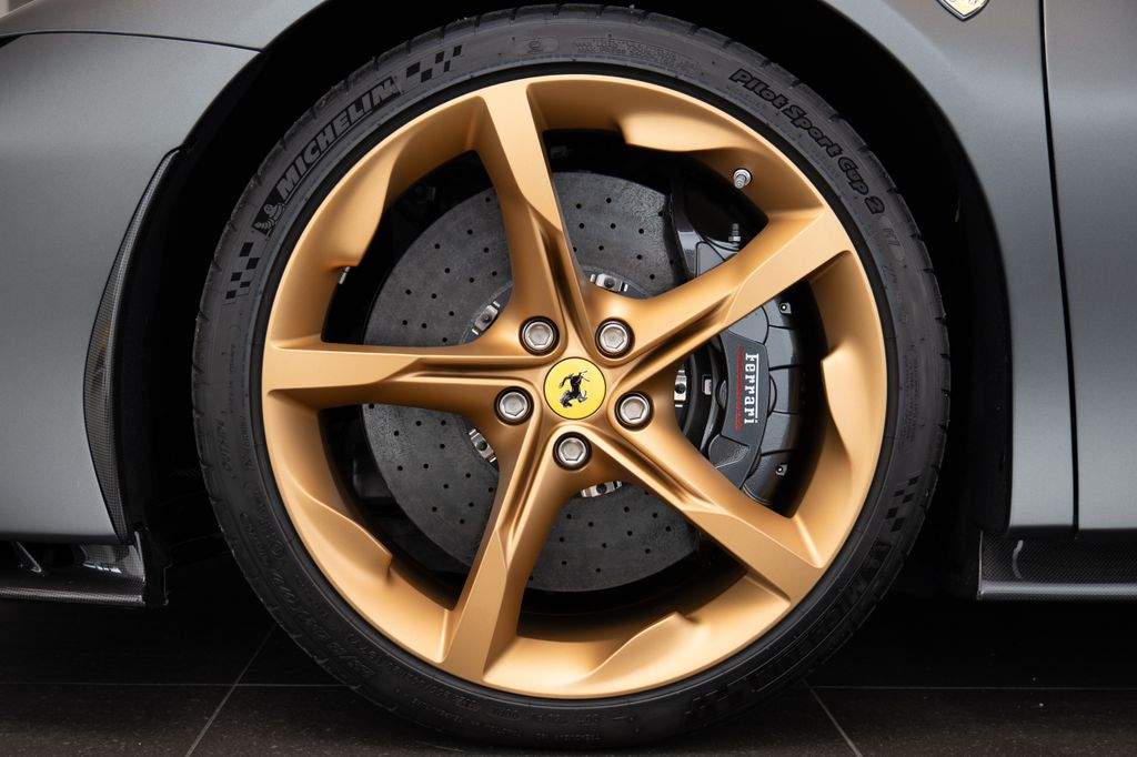 Přední radar s adaptivním tempomatem; Adaptivní systém předních světlometů; Středová část sedadel v černé Alcantaře; Dvoubarevná karoserie (černá Nero DS 1250); Zadní radar; Brzdové třmeny v barvě Silverstone Grey; Přední spoiler z karbonu; Zadní horní obložení z karbonu; Zadní difuzor z karbonu; Spodní kryt vozu z karbonu; Karbonové zóny na volantu s LED diodami; Karbonový kryt přístrojového panelu; Karbonové výplně dveří; Karbonové prahy dveří s logem Ferrari; Horní část středového tunelu z karbonu; Kožené detaily pro zadní spolujezdce (výbava Extrarange; kůže Giallo 113256); Dekorace „Extrarange“ z kůže Giallo 113256; Aktivované připojení MyFerrari Connect; Karbonové dekory přístrojové desky; Přední zvedání vozu (Front Lift); Vyšitý znak Cavallino na opěrkách hlavy (nití v barvě Giallo 0113); Černé koncovky výfuku; Přední spoiler z karbonu; Navigace a konektivita MyFerrari; Znak „Scuderia Ferrari“ na blatnících; Vnitřní elektrochromatická zpětná zrcátka; Přední a zadní parkovací senzory; Speciální matné barvy (Matte Grigio Silverstone); 20' kovaná kola v tmavém odstínu; Matné zlaté ráfky (Matte Gold); Závodní karbonová sedadla; Zvedák pro závodní použití; Prémiový audiosystém Hi-Fi; Rozšířená personalizace (Atelier); Barevné kontrastní prošívání (nití v barvě Giallo 0113); 360° kamera s funkcí „Surround View“; Titanové šrouby kol;