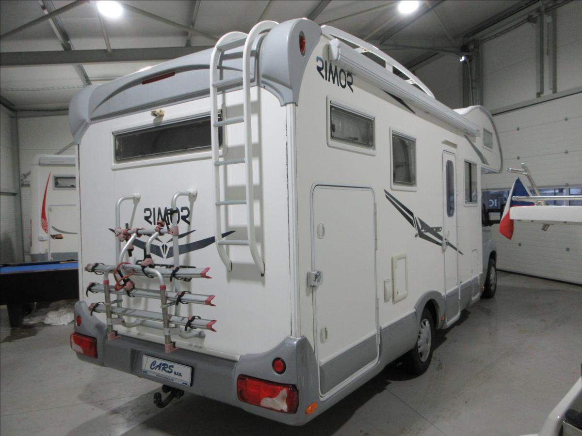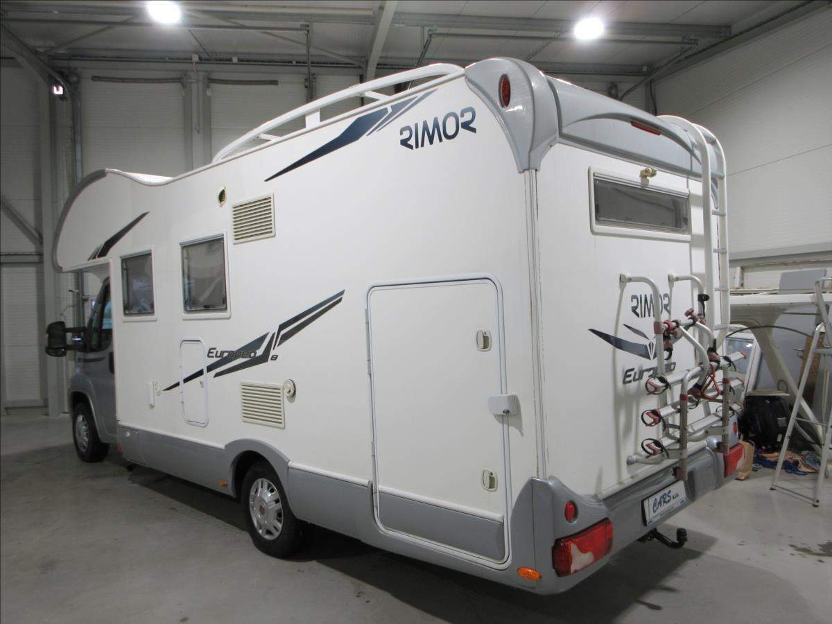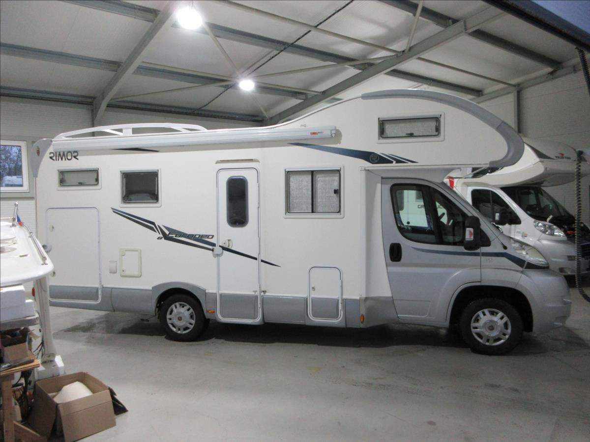Druhý majitel; Úvěr možný; Vozidlo Fiat Ducato s nástavbou Rimor Europeo 8 s alkovnou. Vozidlo s motorem 2.3 JTD 109 Kw s manuální 6ti rychlostní převodovkou v 5ti místné verzi. Tažné zařízení na 2000 Kg. Bezpečnostní zámky na všech dveřích; nová nepoužitá 4m markýza Fiamma F45s; solární panel; digestoř; nová lednice v ceně 30 tis. Kč.; nová trakční baterie; otočné přední sedadla; velká garáž + velké L+P dveře; zimní pneu a v ceně sada kol včetně letních pneu.;