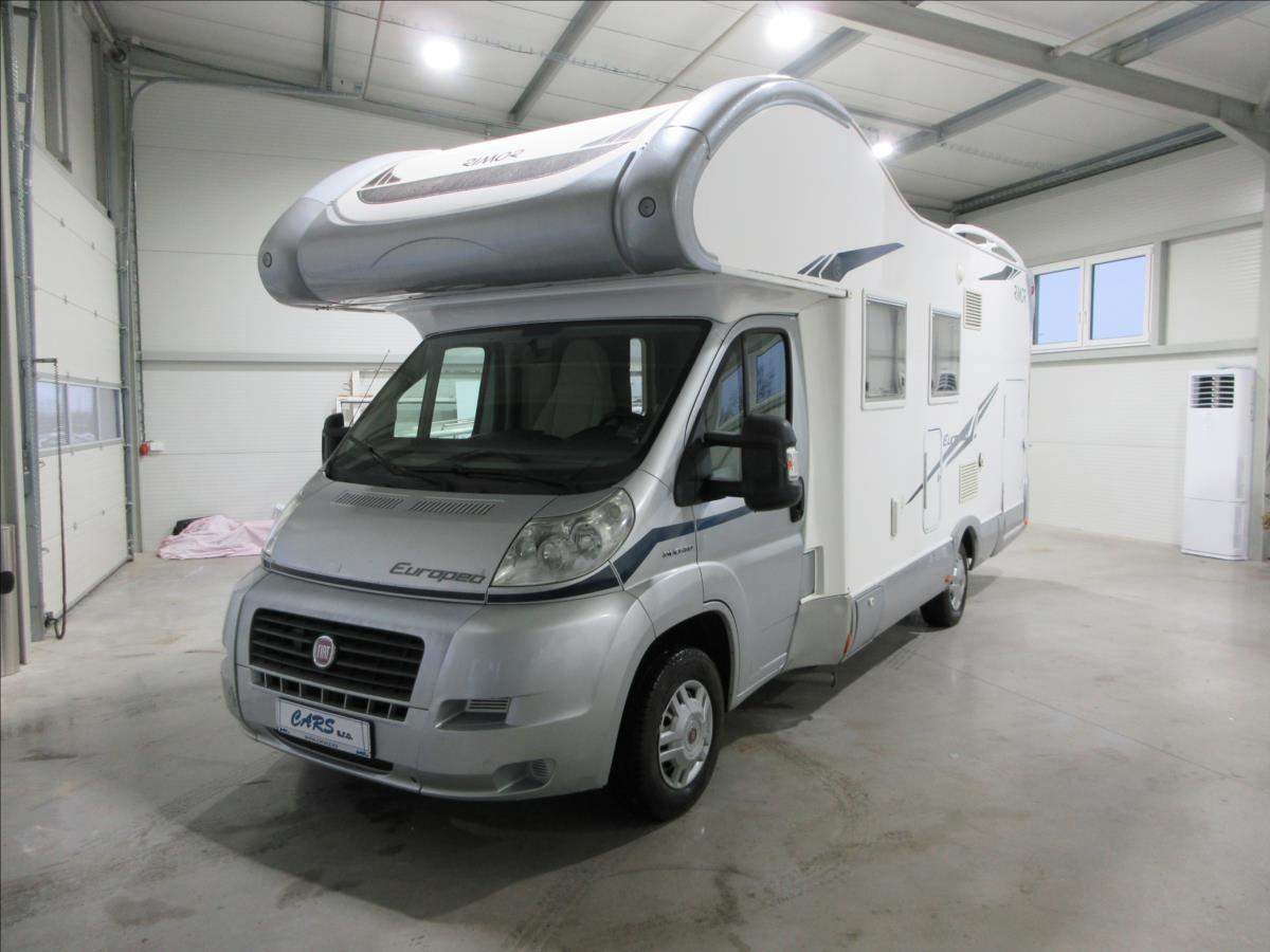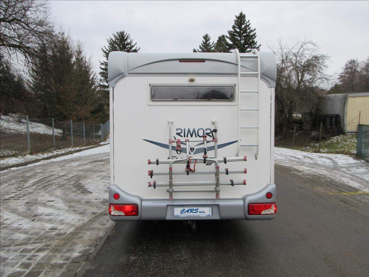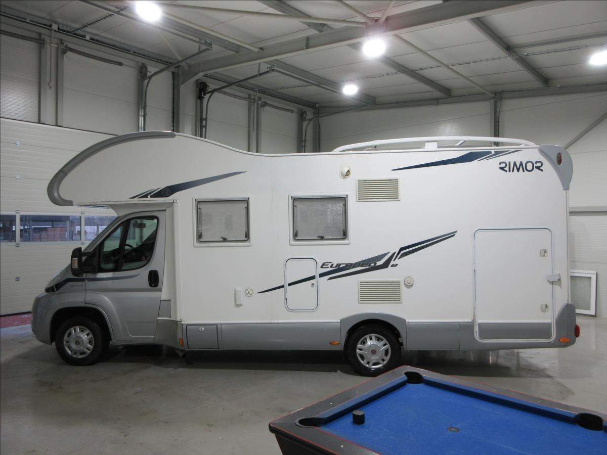 Druhý majitel; Úvěr možný; Vozidlo Fiat Ducato s nástavbou Rimor Europeo 8 s alkovnou. Vozidlo s motorem 2.3 JTD 109 Kw s manuální 6ti rychlostní převodovkou v 5ti místné verzi. Tažné zařízení na 2000 Kg. Bezpečnostní zámky na všech dveřích; nová nepoužitá 4m markýza Fiamma F45s; solární panel; digestoř; nová lednice v ceně 30 tis. Kč.; nová trakční baterie; otočné přední sedadla; velká garáž + velké L+P dveře; zimní pneu a v ceně sada kol včetně letních pneu.;