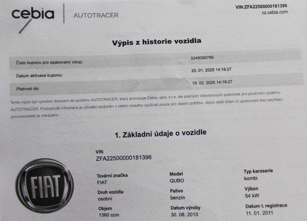 ZFA22500000181396 prověřit vozidlo online
