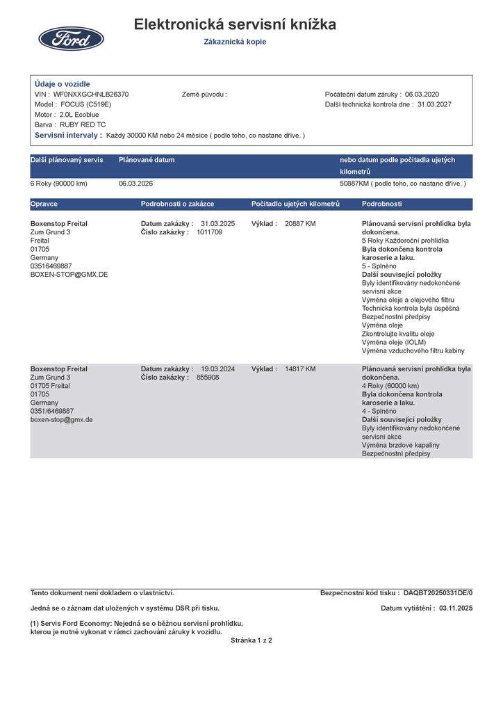 WF0NXXGCHNLB26370 prověřit vozidlo online