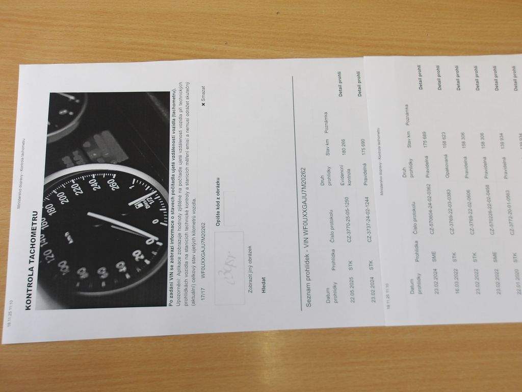 WF0UXXGALU7M20262 prověřit vozidlo online