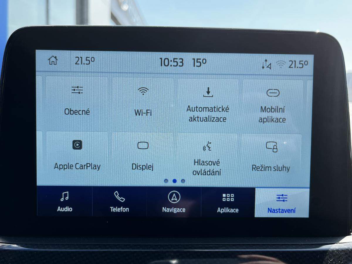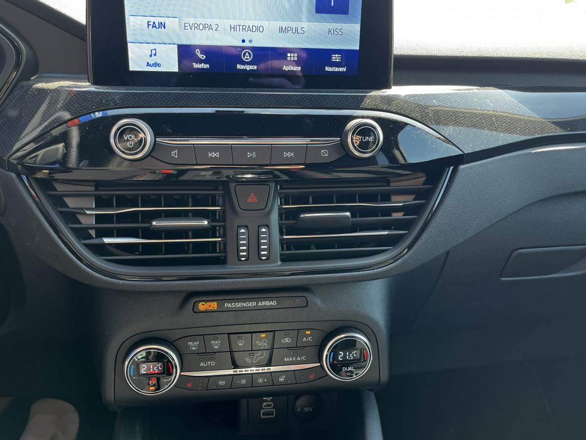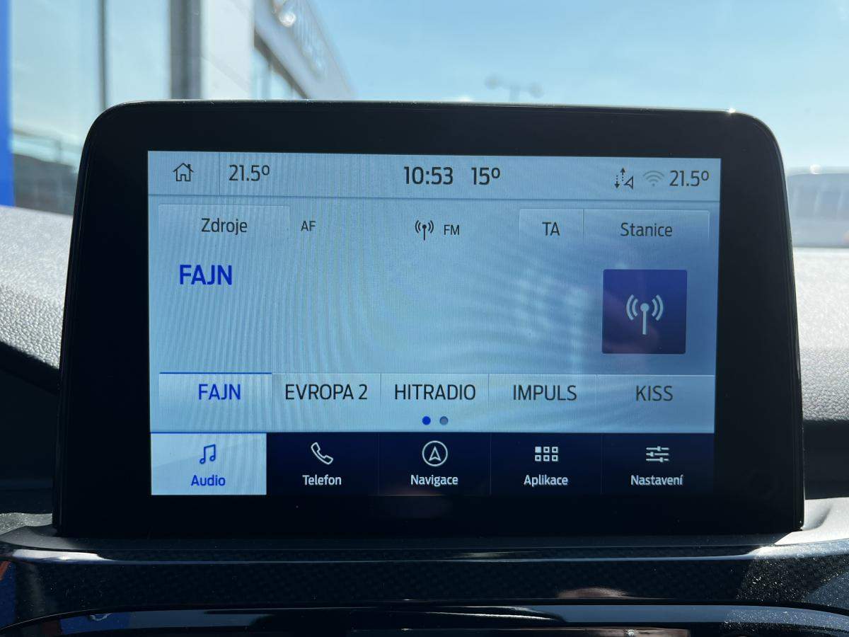 DEMO vozidlo k odběru ihned; Záruka do roku 2027/100 000 km. vyhřívaná přední sedadla; vyhřívané čelní sklo; vyhřívaný volant; 17'' x 4.5 ocelová minirezerva; T155/ 70 R17 110M; vestavěný modem 4G vzdálené ovládání vozu pomocí aplikace mobilního telefonu (předplatné na 10 let od registrace vozu) 1 rok zdarma na funkce Informace o nebezpečí v okolí (LHI) a LiveTraffic pro navigaci SYNC 3 eCall tlačítko SOS pro automatické i vyžádané nouzové volání; 3D navigace s vykreslováním budov SYNC 3 s 8'' dotykovým displejem a hlasovým ovládáním v českém jazyce; pomocí kterého lze ovládat navigaci; audiosystém a telefon funkce Applink; Android Auto a Apple CarPlay Bluetooth handsfree a ovládání na volantu 6 reproduktorů (přední: 2x basový; 2x výškový; zadní: 2x širokopásmový) 2x USB konektor příjem DAB (rozhlasové digitální vysílání); automatická dvouzónová včetně vnitřní recirkulace vzduchu;