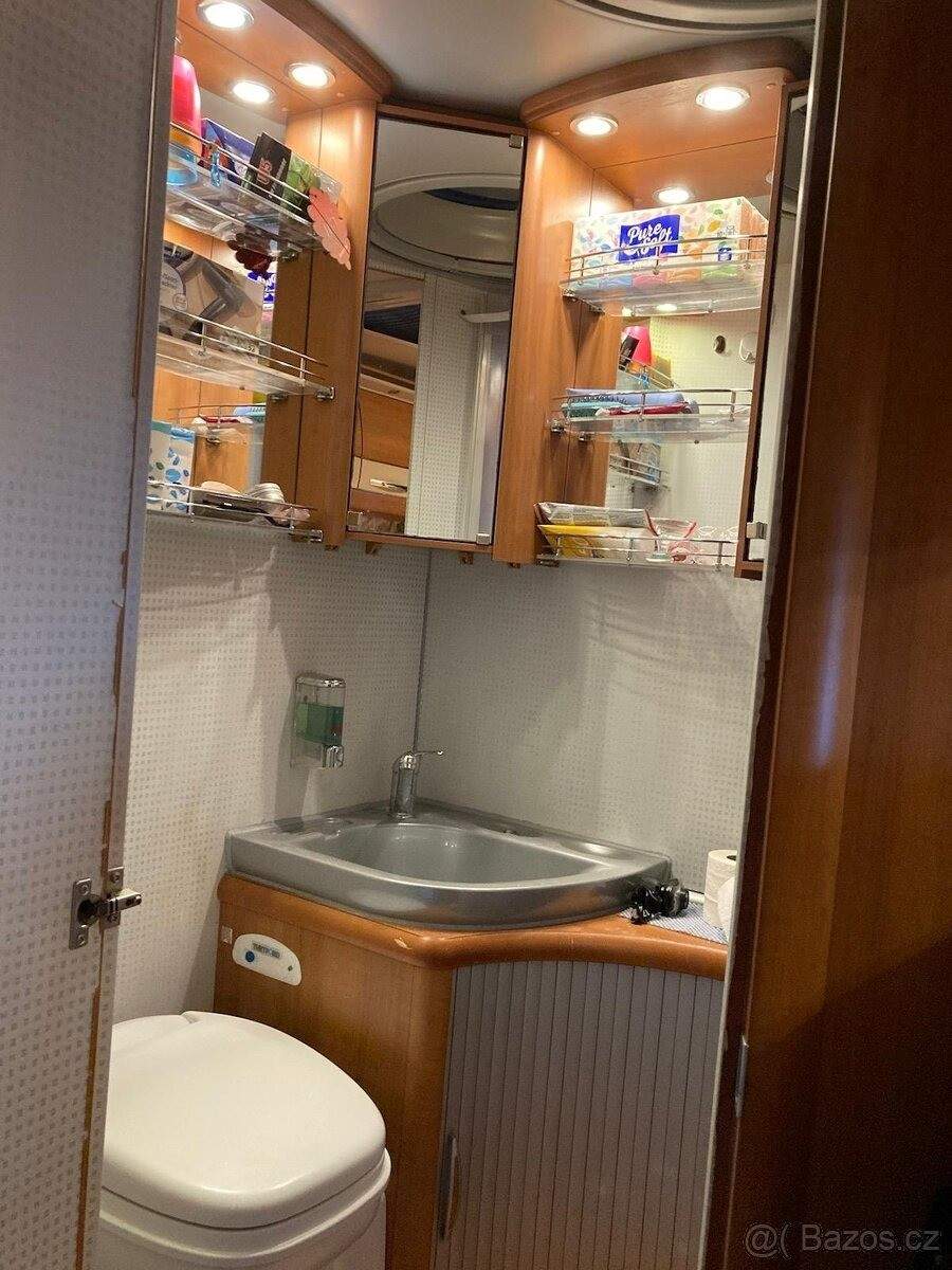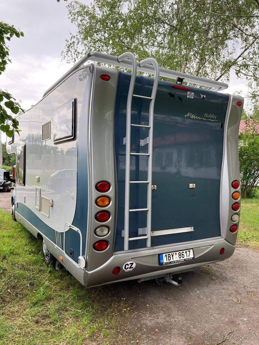 TEL: 724610787 OKR: KARVINA Prodám obytné auto Ford Hobby Siesta 650; alkovna; r.2009; nosnost 3850kg; zadní pohon; tažné zařízení; měchy; alarm Jablotron; délka 695cm; najeto 163 tis. km; STK do 20.5.2027; celoroční provoz; garážované. Bohatá výbava. Počet míst na jízdu 4; spaní 6. Remisy v kabině řidiče; couvací kamera; markýza Thule Omnistor 4; 5m s osvětlením; solární panel; elektrický schůdek; venkovní přípojka na plyn a sprchu; Duocontrol; 2x plnící plynová láhev Alugas; nosič na 4 jízdní kola; vestavbová baterie LIFEPO4; booster; měnič; trezor; nezávislé naftové topení velká lednice s mrazákem 12/220/plyn; topení Truma combi 6; 2xTV. K autu přidám druhou sadu kol; náhradní kazetu wc; vnitřní termoizolaci Konig; venkovní letní izolaci a zimní termokabát Konig. Cena k jednání;