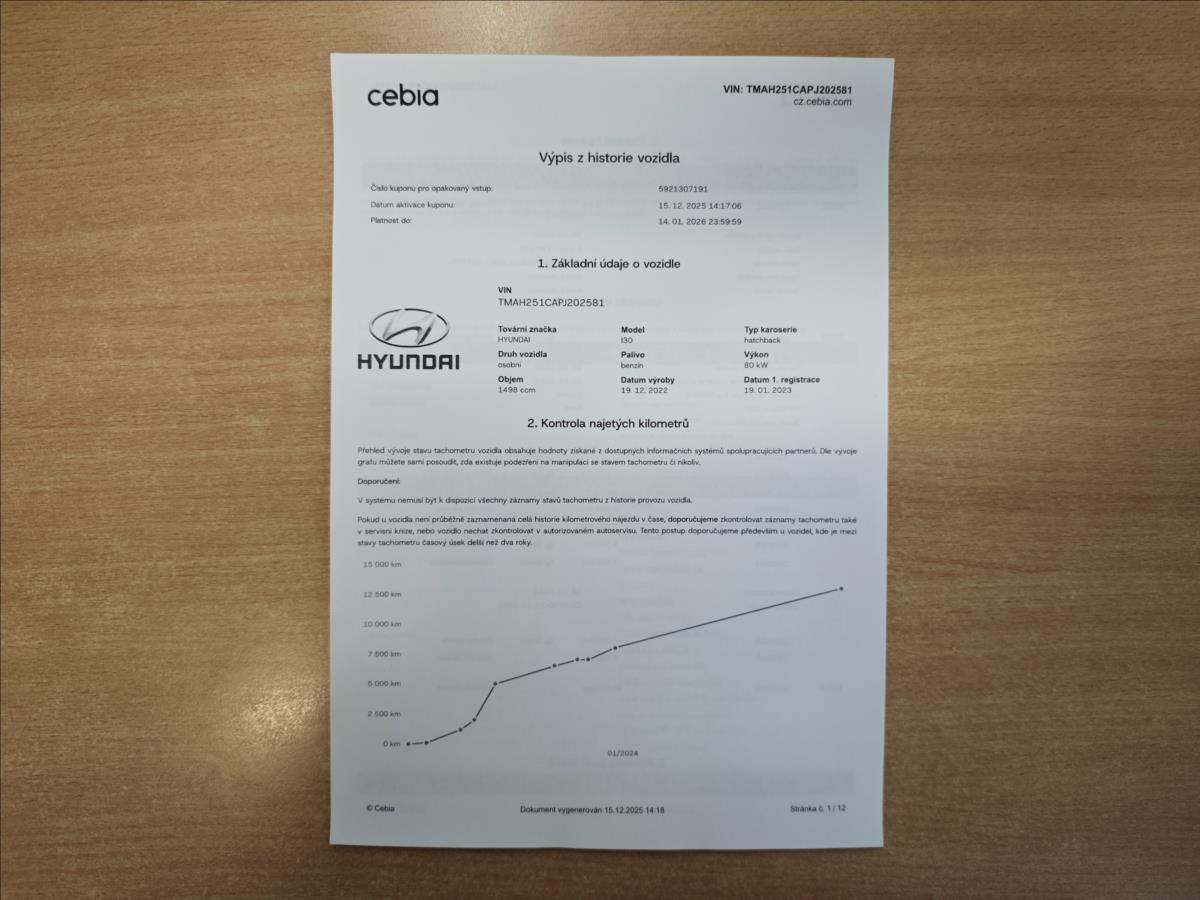Druhý majitel; Mimořádně zachovalý vůz po druhém majiteli (první majitel autosalon); koupený nový v HYUNDAI - Autocentr Hudec s.r.o.; v plné tovární záruce do 1/2028 bez omezení počtu najetých km; nehavarovaný ani jinak lakovaný; pravidelně servisovaný - poslední servisní prohlídka 12/2025 - 17.300km; doložený stav tachometru; 2x klíče.;