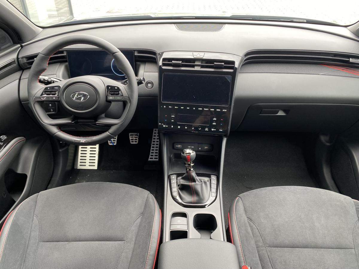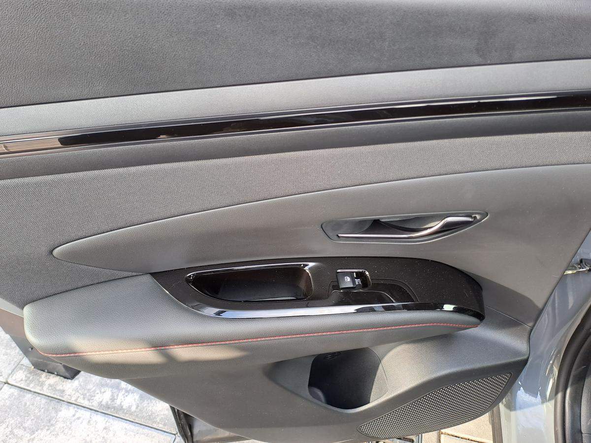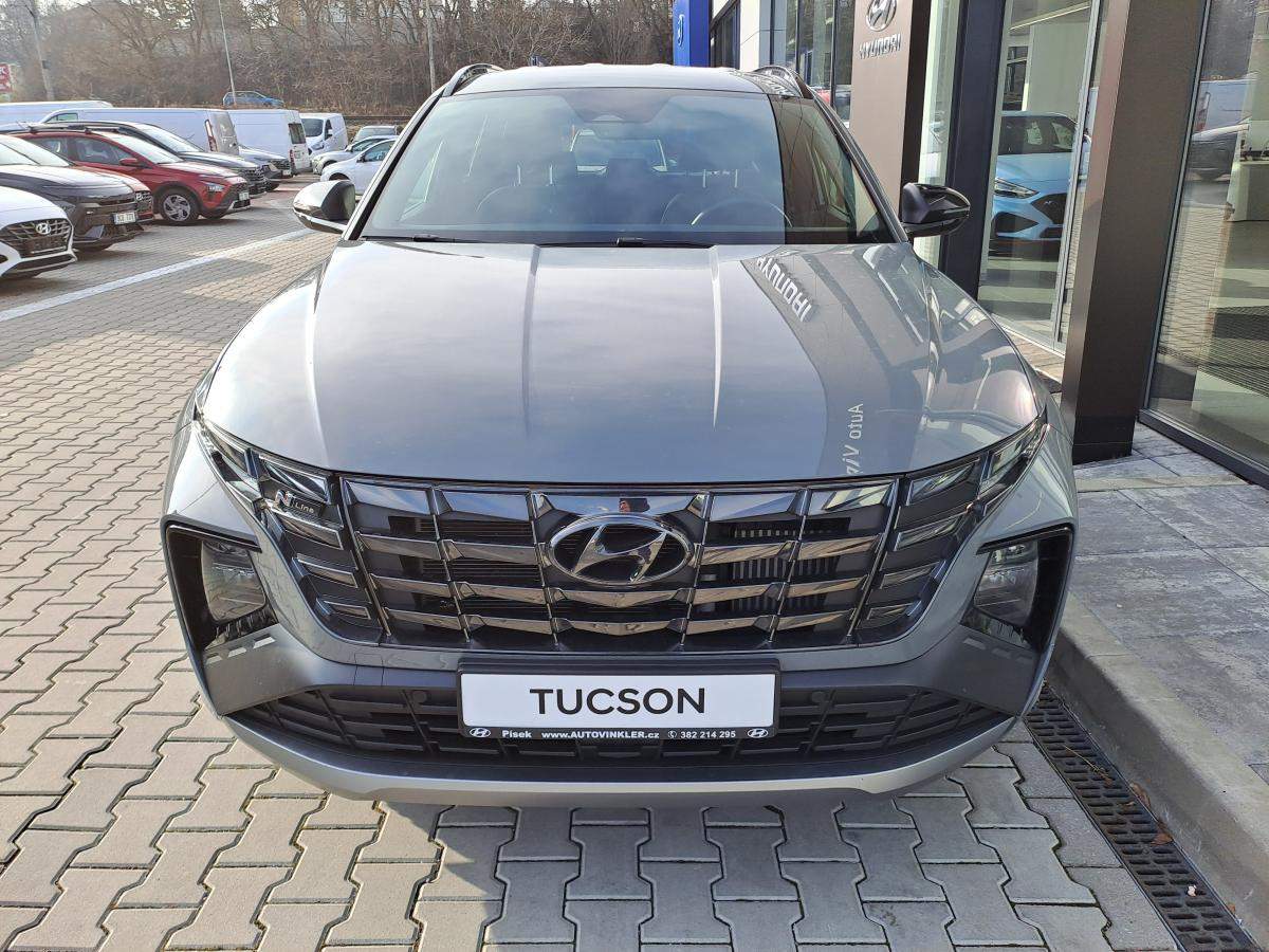 Předváděcí vozidlo s možností ihned k odběru. TUCSON Motor 1; 6 T-GDI MHEV 4×2 132 kW. 6st. manuální převodovka. Barva Shadow Gray. Stupeň výbavy N LINE. Exteriérový designový sportovní paket N Line. Reflektorové Full LED přední světlomety se statickým přisvěcováním do zatáčky. N LINE 19 kola z lehké slitiny. Sada na opravu pneumatik. Sledování mrtvého úhlu (BCW); upozornění na projíždějící vozidla při couvání RCCW. Asistent pro vedení vozu v jízdních pruzích LKA a sledování únavy řidiče DAW vč. upozornění na rozjezd vozidla vpředu LVDA. Autonomní nouzové brzdění FCA včetně varování před čelním nárazem FCW s detekcí chodců a cyklistů. Aktivní asistent pro vedení vozu v jízdních pruzích LFA. Zadní + přední parkovací senzory. Zadní parkovací kamera.;