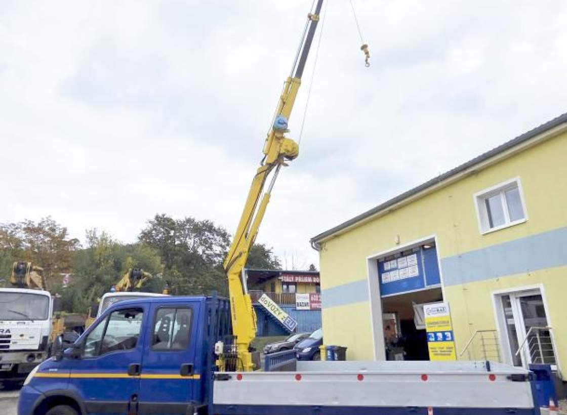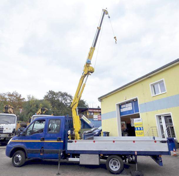 nákladní automobil do 3.5t = ŘP.B valník s jeřábem; double-cab pro 7 osob IVECO 50C18 Daily; design Giugiaro s HR Effer 3700 2S s navijákem; rok 2007; najeto 145 534 km; motor 3.0D 16V / 130 kW / Eur4; hmotnost 3.1t - oficiálně do 3.5t; tupláky - zadní náprava 2.6t; 7 míst - sedadla kůže; manuální převodovka 6 st.; 2x TZ (i na 3.5t a vzduch.brzdy) - 7t v soupravě; 4 opěry; ABS; rozvor 4350 mm; dobrá korba - ložná 3.3x2m (+70cm kde HR); pneu R16C 195/75; uzávěrka diferenciálu; výškově nastavitelné sedadlo řidiče; airbag řidiče; STK do 3/2027; HR max 1.35t v 2.5m / 450kg v 6.45m; NAVIJÁK = I JAKO JEŘÁBEK; v CZ od 2022 (dovoz NL); ID 1721840868_J; K vidění v našem areálu v Teplicích/Bystřanech.;
