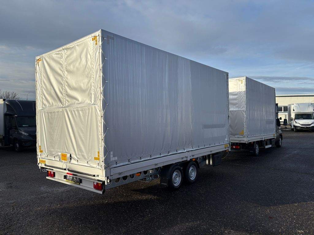 Iveco Daily 3.0 Hi-matic; 180Hp; zadní spaní Spojkar se dvěma lůžky; 10 palet s rozměry délka 4200mm; šířka 2450mm; výška 2450mm + průjezdný přívěs na 12 palet s rozměry délka 5170mm; šířka 2450mm; výška 2450mm. Překlopná rampa z přívěsu do auta s nosností 2.000kg.;