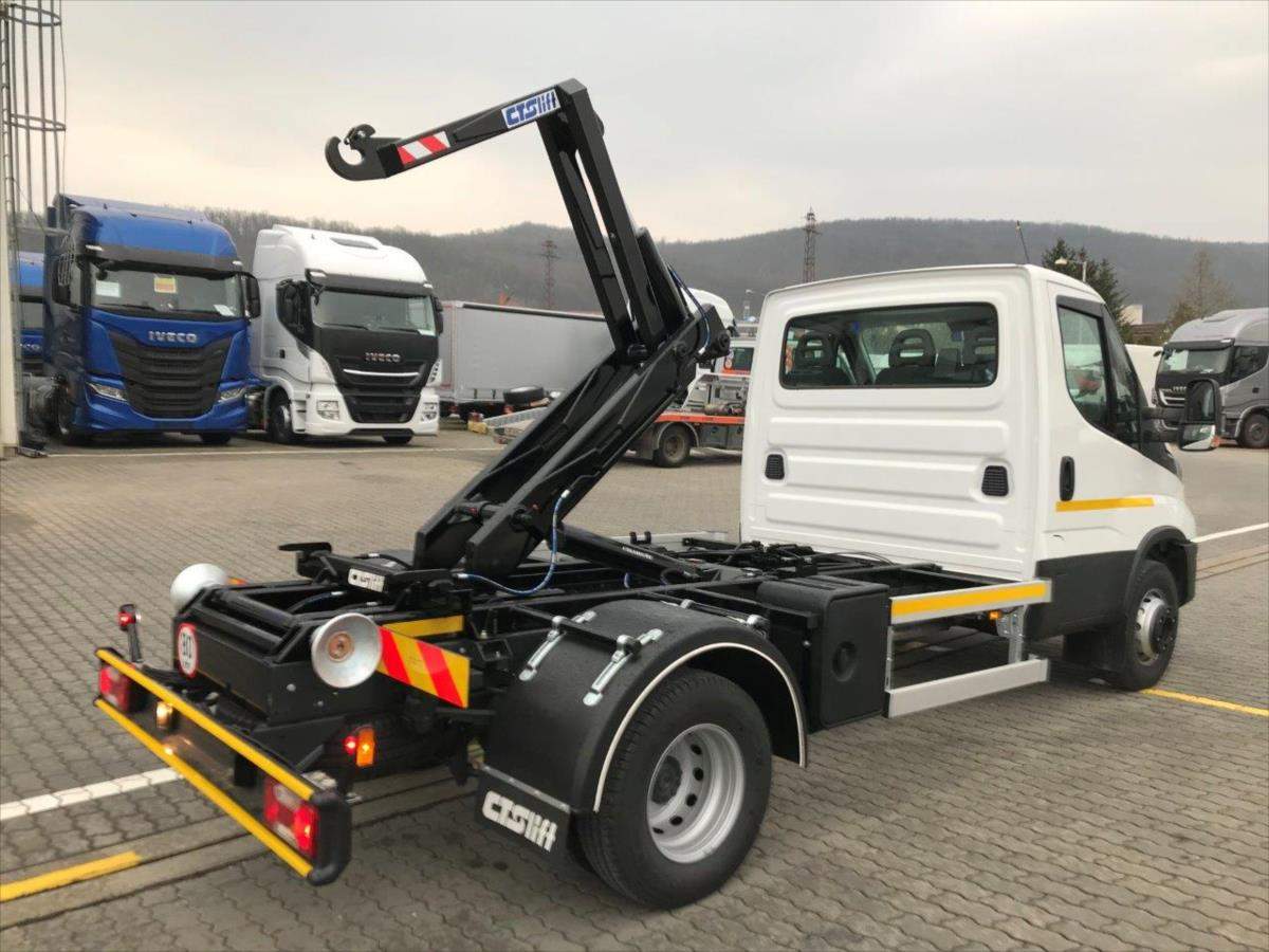 Leasing možný; Spotřebitelský úvěr; zesílené zdvojené odpružení zadní nápravy; ocelová ochrana chladiče a vany motoru; odpružené sedadlo řidiče ISRI vč. loketní opěrky; vnitřní provedení 1+2; palubní počítač v ČJ; multif. dvouose nastavitelný volant; nástupní madla; prosklená zadní část kabiny; omezovač rychlosti; tachograf VDO SIEMENS; příprava pro závěs ISO50; atd./nosič kontejnerů CTS 5038; natahovací výkon 5000kg; výška háku 1000mm; úhel sklápění 46°; doporučená délka kontejnerů 3200-3800 mm.;