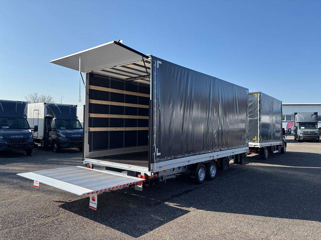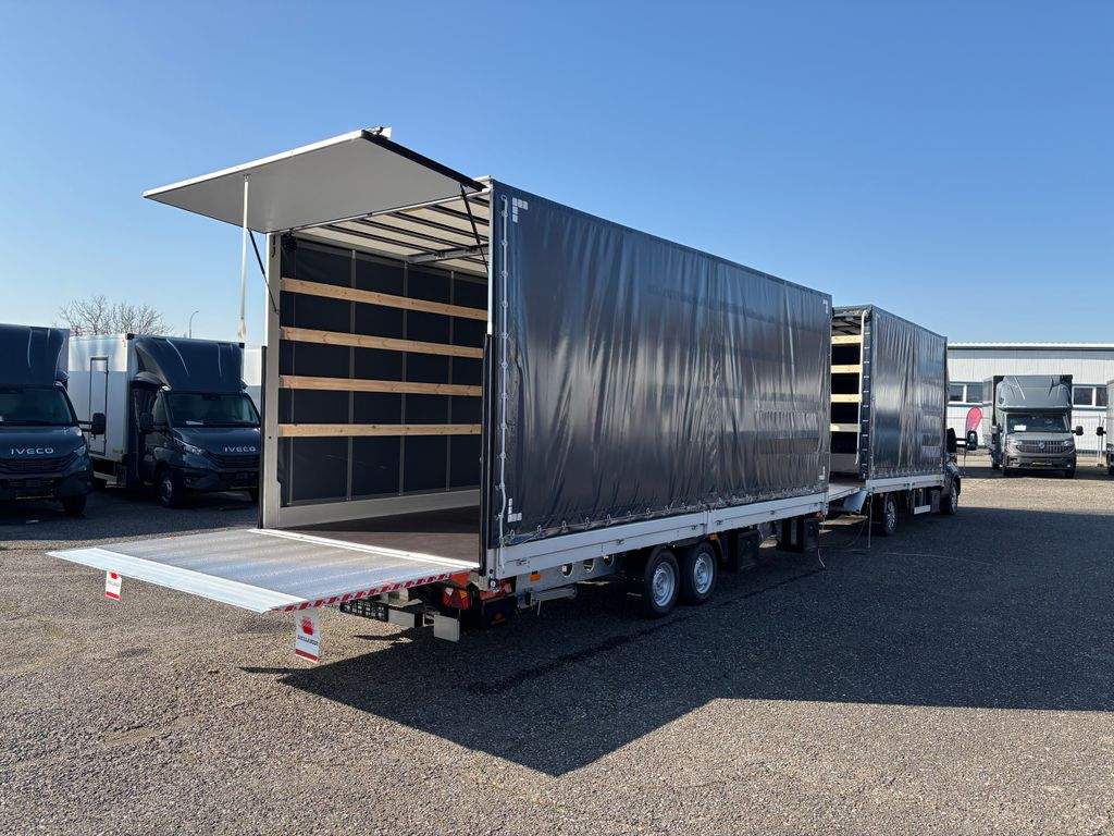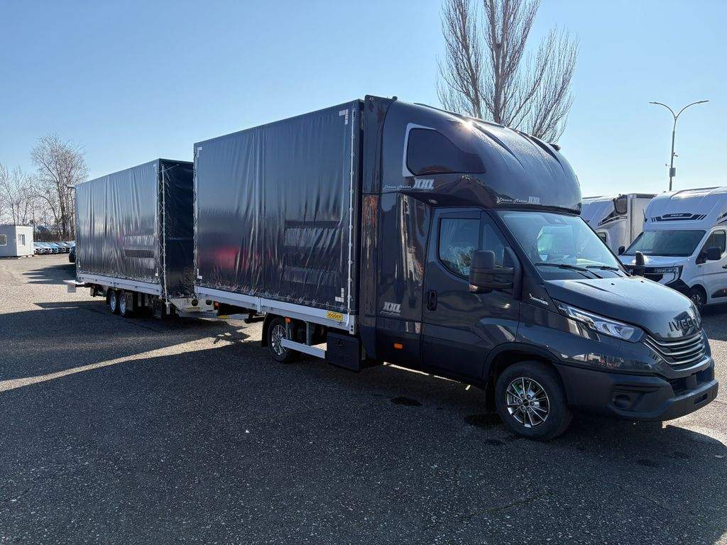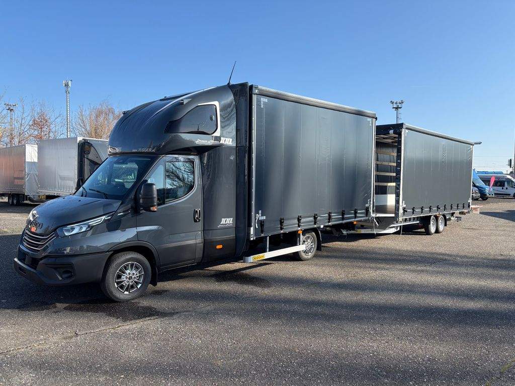 Iveco Daily 3.0 Hi-matic 180Hp; zadní spaní Jegger XXL se dvěma lůžky; 10 palet s rozměry délka 4200mm; šířka 2450mm; výška 2450mm + průjezdný přívěs na 15 palet s rozměry délka 6100mm; šířka 2450mm; výška 2450mm. Překlopná rampa z přívěsu do auta s nosností 2.000kg. Hydraulické čelo 750kg na zadní straně přívěsu.;