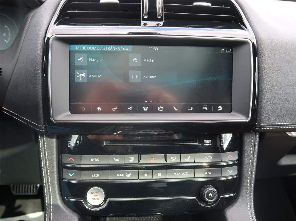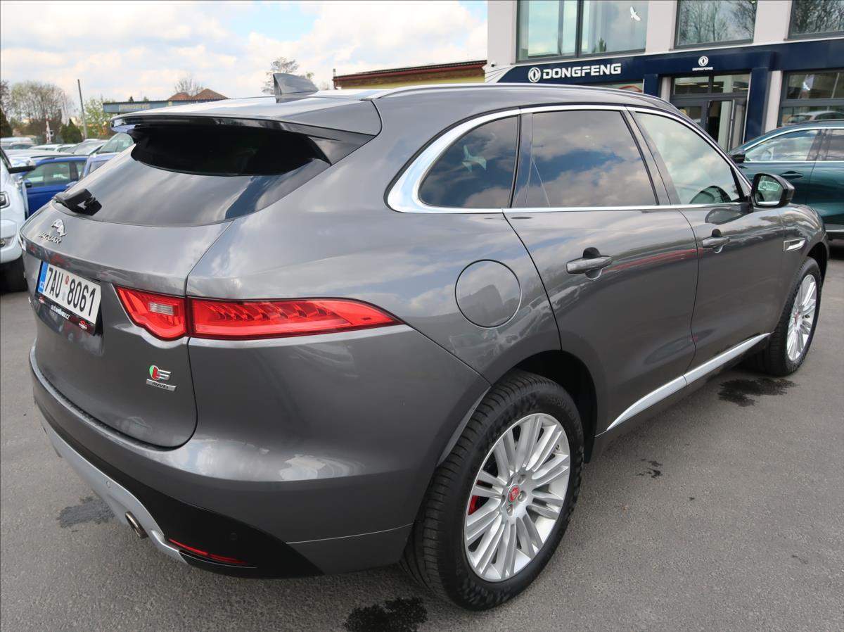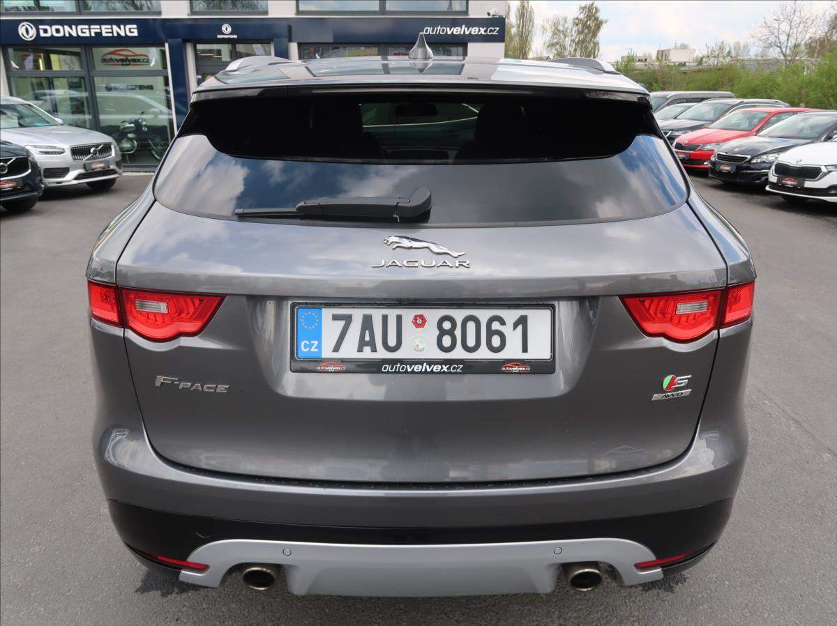 Čtvrtý majitel; Cena bez DPH: 578 429; -Kč. Jaguar F-Pace S. 280kW/381PS; Panoramatická střecha; vyhřívaná přední + zadní sedadla + volant + přední sklo; satelitní navigace; přední + zadní parkovací senzory + kamera; automatická převodovka + řazení pádly pod volantem; LED přední světlomety; tempomat; head-up display; tažné zařízení; elektrické víko zavazadlového prostoru; možný odpočet DPH; možný protiúčet; možný prodej na splátky.;