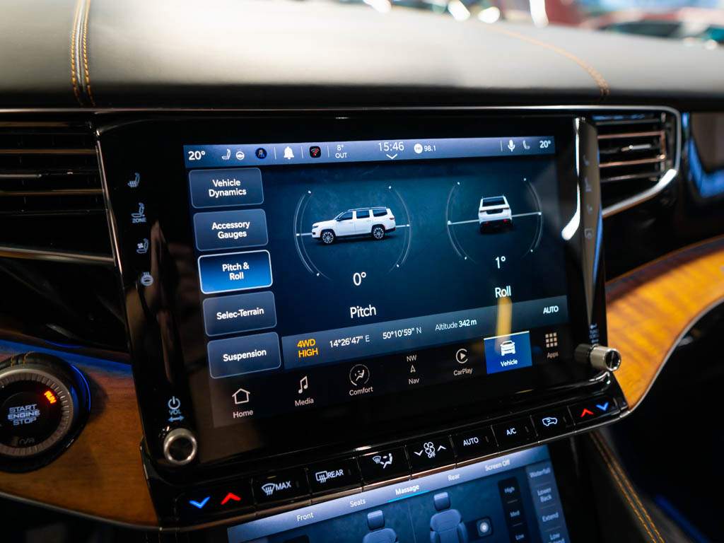 První majitel; Jeep Grand Wagoneer Series III 6.4L HEMI V8 LPG PRINS. 7 místný interiér; Series III představuje nejvyšší možnou výbavu. Prémiová Palermo perforovaná kůže; vyhřívaný volant; vyhřívané i chlazené sedačky v první i druhé řadě. Head-Up display; adaptivní tempomat; vzduch podvozek; noční vidění; McIntosh premium audio systém s 19 reproduktory a 950W zesilovačem; panorama střecha; 360° parkovací kamera; plně digitální přístrojový štít. ZÁRUKA DO 08/2025.;