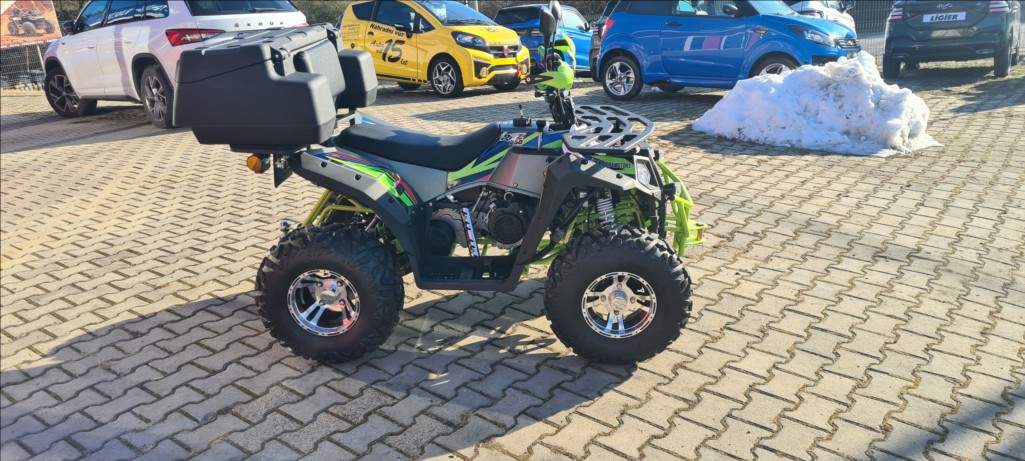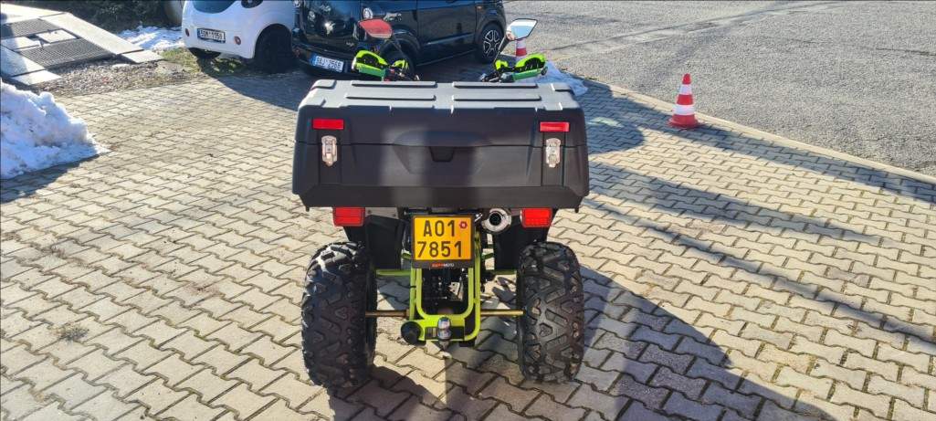 První majitel; Čtyřkolka Leramotors By APOLLO RFZ 250 T3B je vhodná pro terénní jízdu i pracovní úkoly. Má 7.3kW motor; automatickou převodovku s možností zpátečky a hydraulické kotoučové brzdy. Maximální rychlost je 60 km/h. Čtyřkolka je vybavena zpětnými zrcátky; tažným zařízením; nosiči a digitálním displejem. Je určena pro jezdce od výšky 140 cm a řidičský průkaz skupiny B. Maximální zatížení je 150 kg. Lze ji přihlásit na žluté SPZ. Palivo Natural 95; nádrž má kapacitu 6l. Hliníkové ráfky 10';